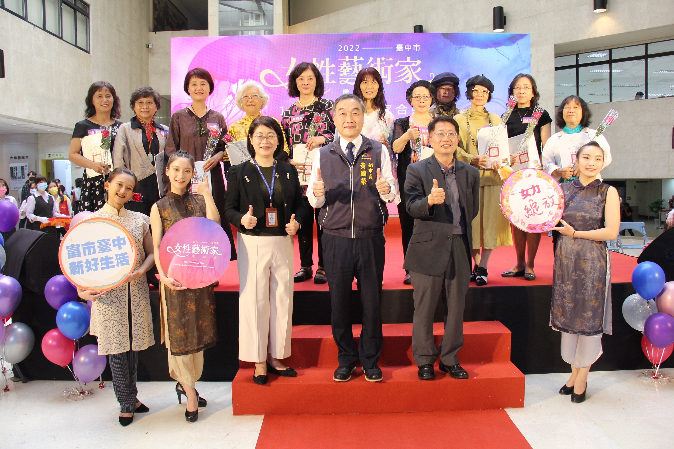 開幕式現場,由台中市傑出演藝團隊「極至體能舞蹈團」的「女力舞讚」表演揭開序幕。邀請展發起人暨藝術家張淑美說,感謝市府文化局每年舉辦女性藝術家邀請展,為女性創作者點亮一盞明燈,在求學時代有很多女同學和自己一起學畫,但畢業後卻在家庭及事業兩頭燒的情況下放棄藝術創作。對她來說,創作就是將生活與繪畫結合,像寫日記一樣記錄自己的感情與生活,能有機會為台中女性藝文創作貢獻心力,甚至連續18年參展,一同見證光榮歷史,心裡特別感到榮幸。