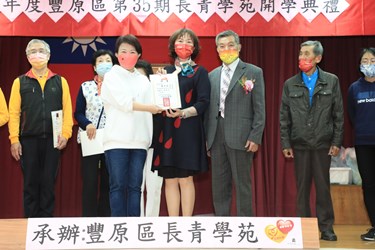 台中市豐原區長青學苑今(10)日上午舉行111年度開學典禮,市長盧秀燕出席頒發老師聘書,並歡迎長青學苑的老師與學員們參加新學期課程。盧市長表示,長青學苑課程豐富多元,深獲長輩歡迎,班班爆滿,從107年771班到去年突破1,000班,學員人數超過4萬8,000人,今年則預計開設1021班。她特別感謝豐原老人會、公所及老師的投入,讓台中市長青學苑持續蓬勃發展。