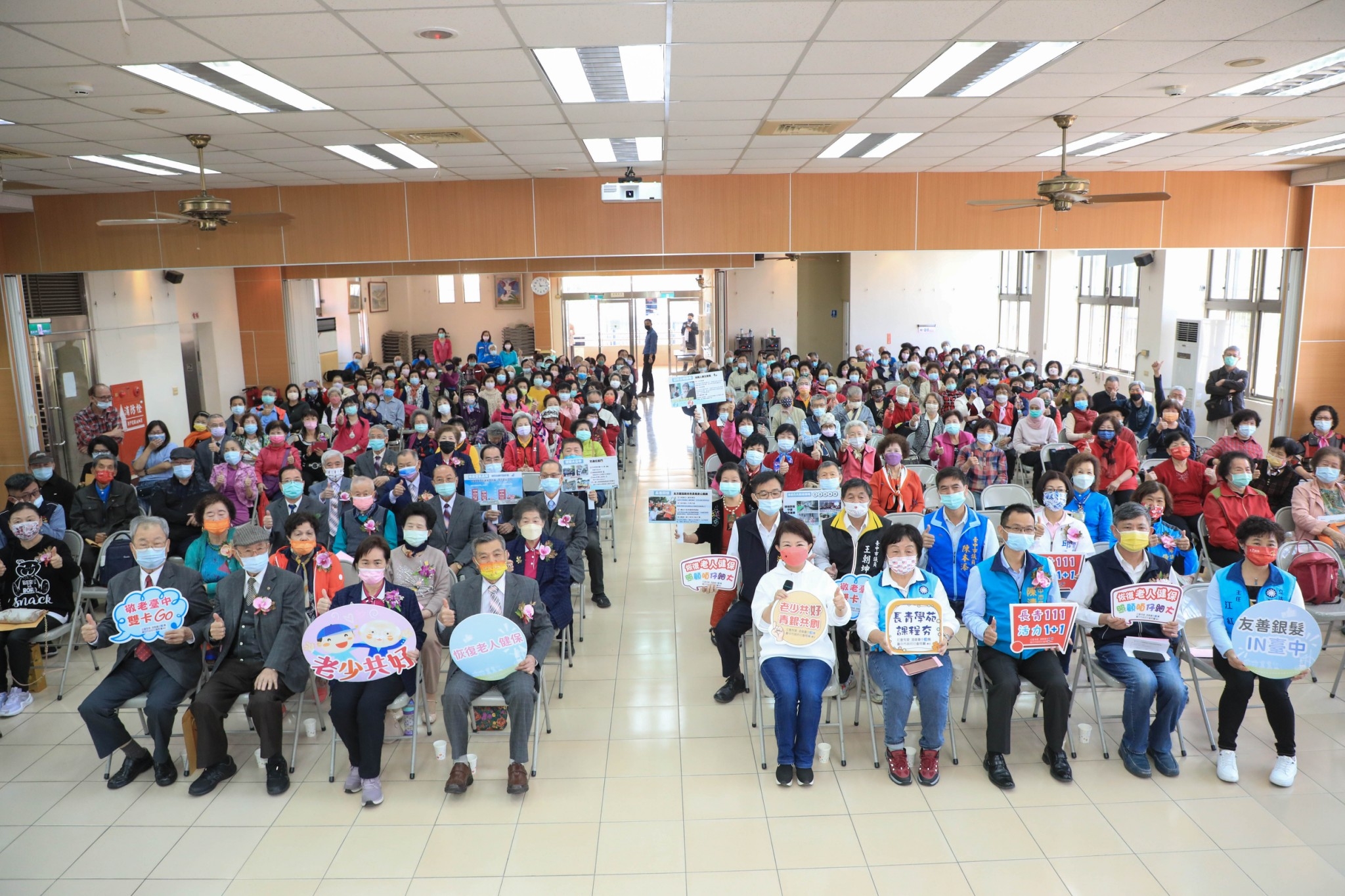 盧市長說明,台中市長輩報名長青學苑第一班免學費,一學期只收100元報名費,報名第二班以上課程,基本上也僅收學費600元。此外,市府持續努力打造銀髮友善環境,例如先前以發送疫苗接種通知單方式,服務長輩接種疫苗;補助老人健保費每人每月最高補助826元;持敬老愛心卡搭乘計程車單趟補助提高至85元;搭乘市區公車免綁卡,直接享有雙十公車優惠等。