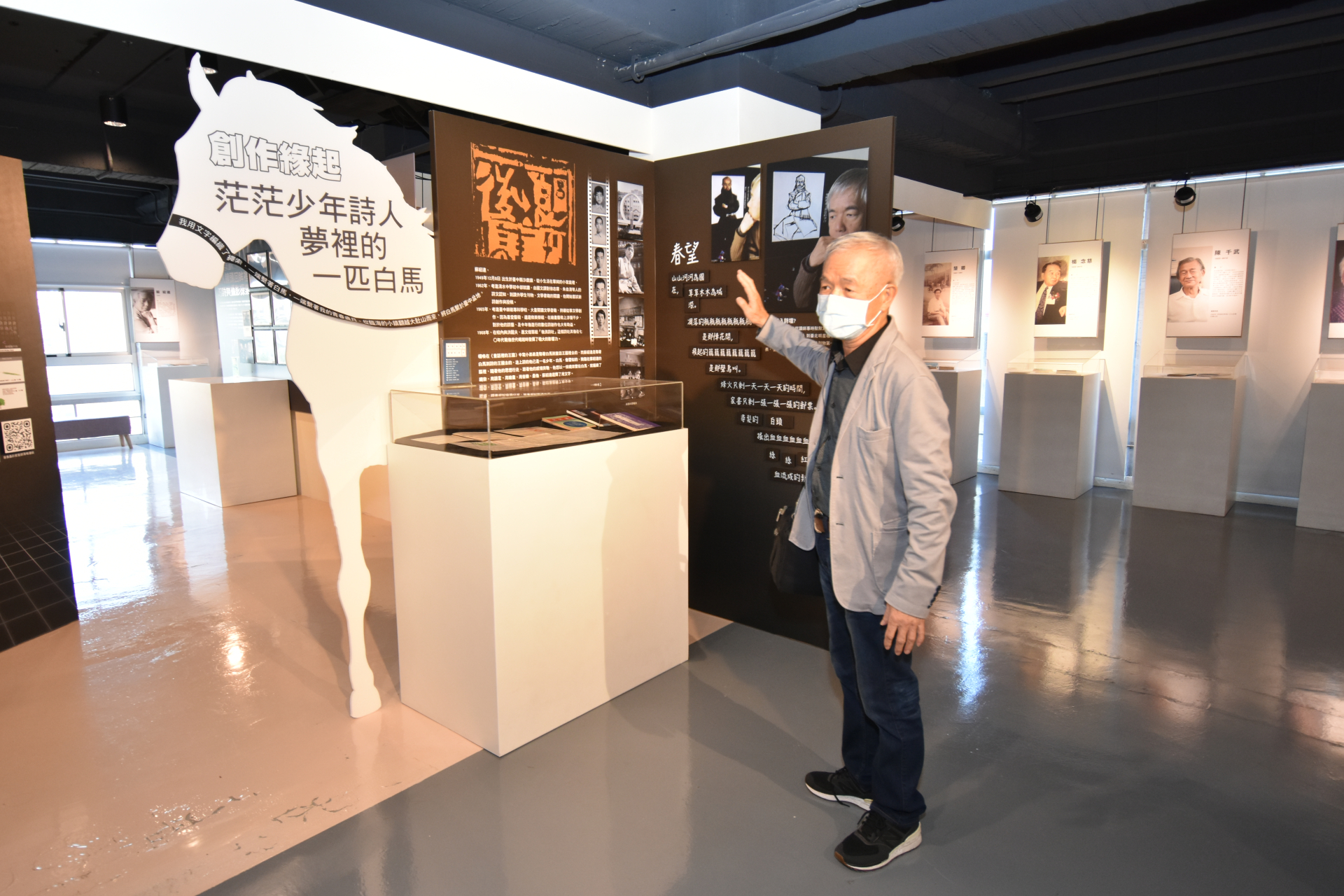 此次展出的攝影詩作,是老師於街頭進行攝影,創作結合詩篇和影像的作品,蘇紹連老師說,原本他只是書房裡的知識探索者,卻在街頭上多了攝影的拍攝體驗,並累積每日所思所為的筆記。