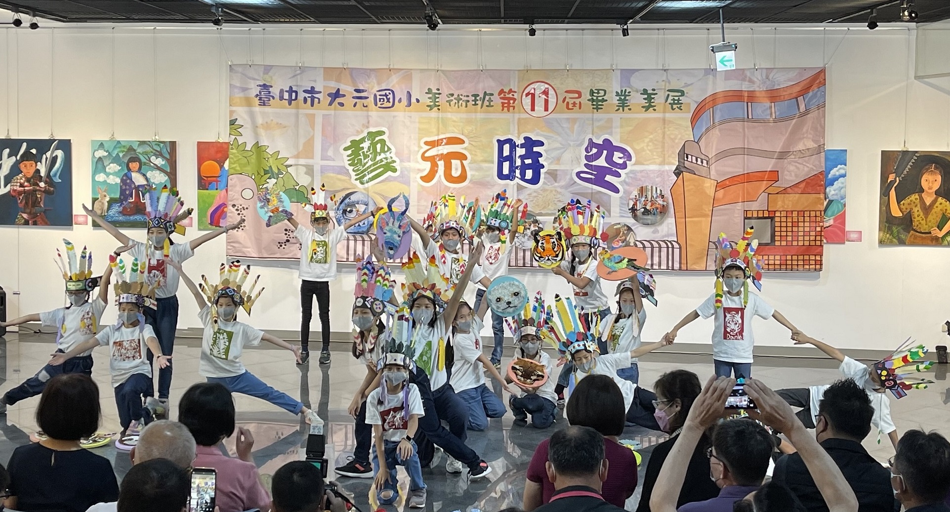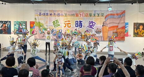 台中市屯區藝文中心今(19)日辦理「台中市大元國小第十一屆美術班畢業美展暨聯展」開幕式,展出應屆美術班畢業生及三、四、五年級在校生的300餘件作品,以多樣的創作媒材表現自由活潑的藝術思維。今日活動由大元國小參展學生盛裝帶來「叢林」演出,為展覽揭開序幕,展期自即日起至4月10日止,歡迎民眾跟著小小藝術家一起遨遊「藝元時空」。