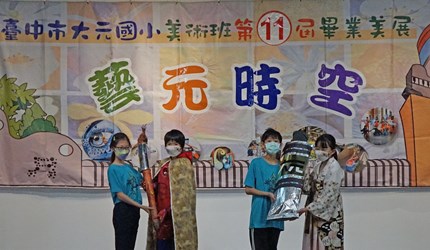 大元國小校長游玉芬表示,大元國小美術班成立於民國97年,是台中市大里區藝術教育的重點學校,今年美術班六年級共19位畢業生,與三、四、五年級的學弟妹,以「藝元時空」為創作主軸,運用水墨、版畫、壓克力、立體造型、繪本等多樣媒材,透過古文物和未來時空的探索,發揮獨特想像,以不同的角度及創意表現,呈現出新新人類的美感詮釋。今年新冠疫情危機尚未解除,孩子上課都帶著口罩,卻不減對藝術創作的熱情,期望透過這次展覽,邀請民眾跟著孩子體驗古今美感的新發現。