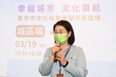 台中市政府文化局主辦「台中市文化政策展望分區論壇」,昨(19)日在大墩文化中心舉辦第一場活動,文化局長陳佳君率領市府團隊共同出席,台中教育大學文創設計學系教授拾已寰、建築師方怡仁應邀擔任引言人,多位社區工作者、藝文人士及關心文化的民眾皆踴躍參與和發言,暢談對台中文化現況的觀察及期待,意見交流熱絡,會中提出的建議將納入未來文化施政參考。