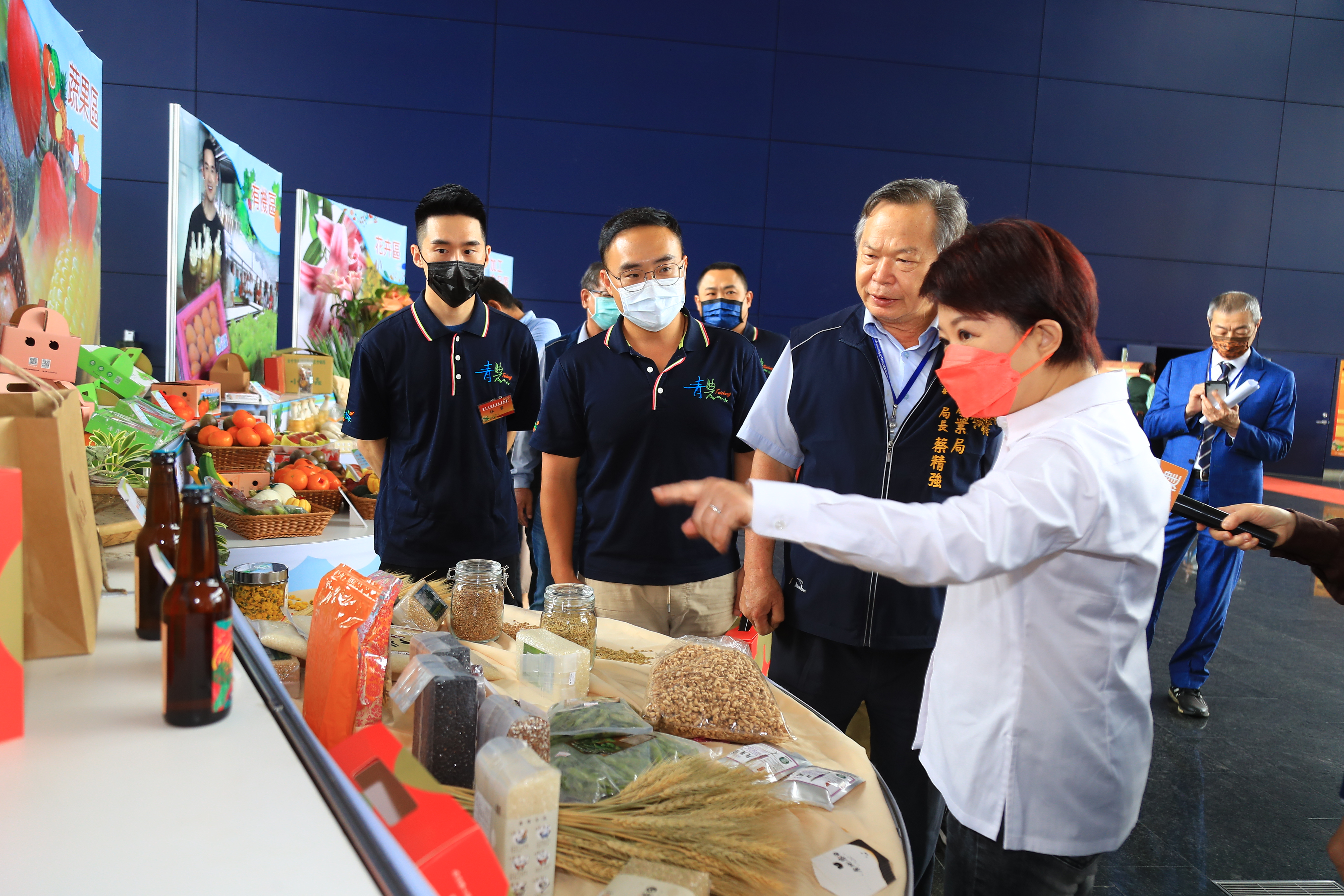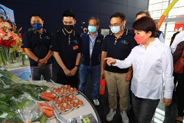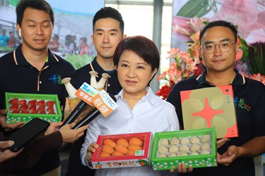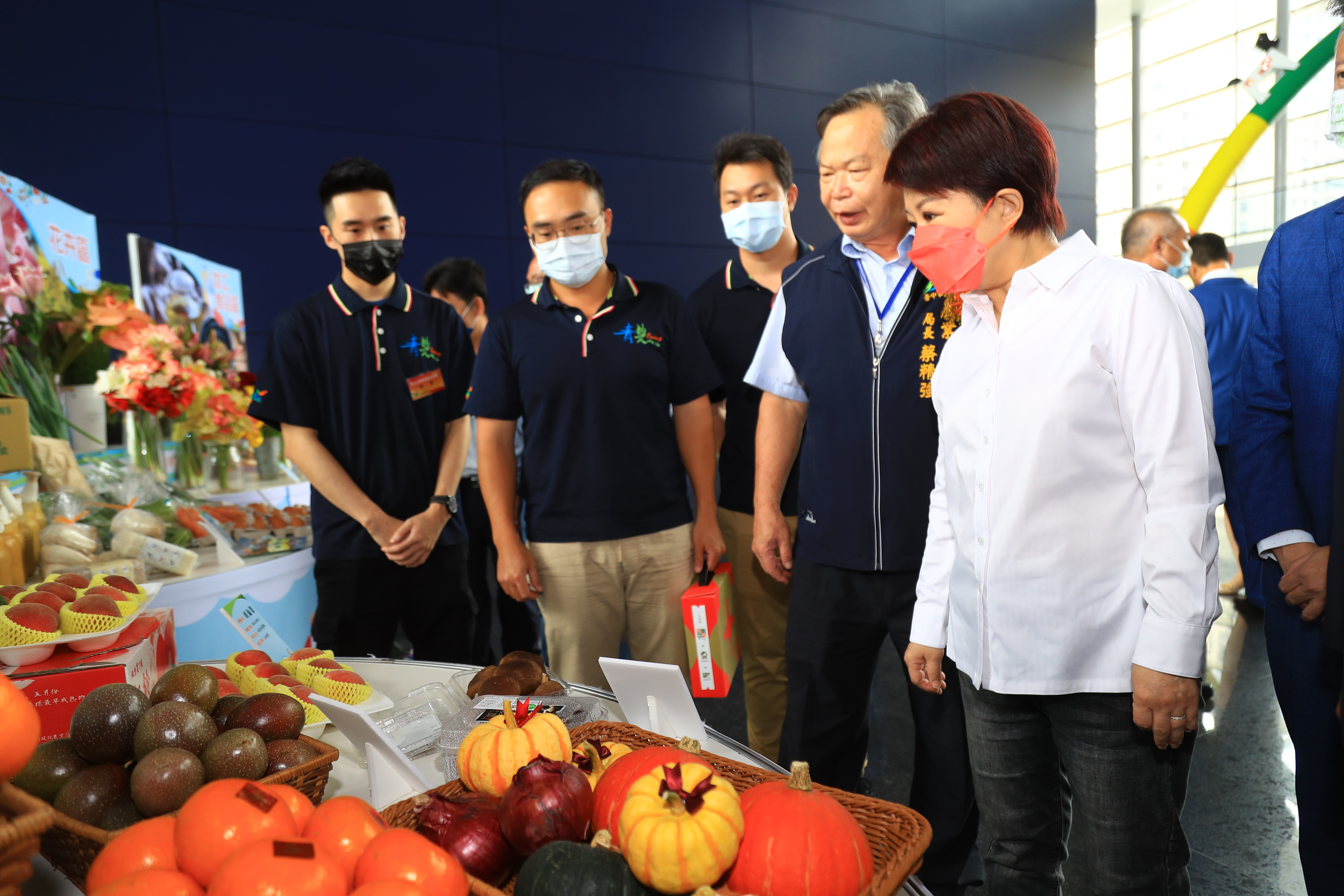 今日會場同步設置「台中青農young 農產成果展示區」,展示台中市各區農會輔導青年農民的農產品亮眼成果,包括有機、蔬果、花卉、雜糧、加工等五大類。盧市長也前往展示區了解各項青農產品,她表示,身為市長也身兼主婦,看到琳瑯滿目且品質良好的農產品,讓她非常心動。