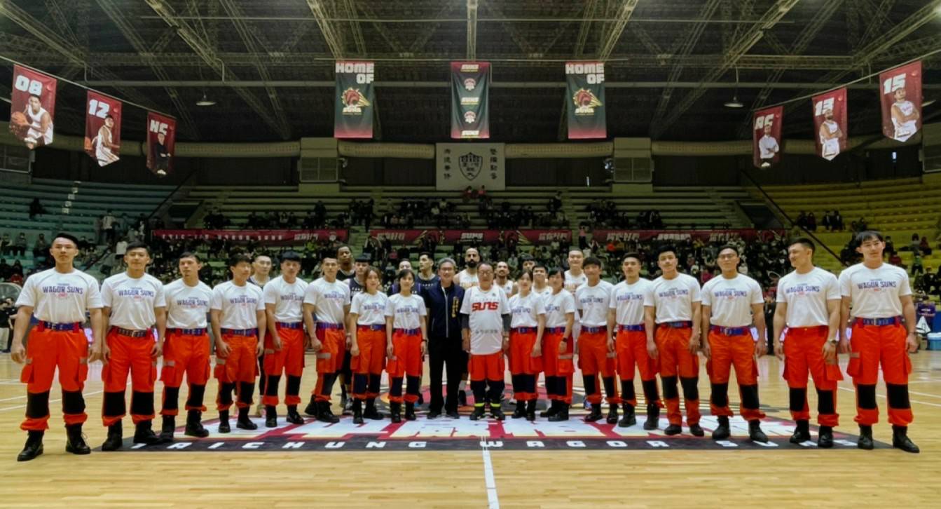 T1 LEAGUE職業籃球聯盟賽事持續進行,台中葳格太陽今(27)日在台中主場台體大迎戰桃園雲豹,現場推出城市英雄主題日,邀請台中市政府消防局長曾進財及擔綱2022年消防形象月曆拍攝的16位男女主角到會場觀賽和開球。運動局長李昱叡也到場代表市府為球隊加油,感謝職業籃球聯盟「T1 LEAGUE」與球團和市府攜手合作,為社會公益拋磚引玉,共同為城市消防努力。