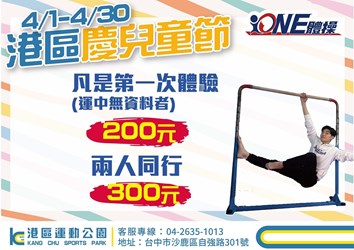 此外,北區與大里運動中心在4月9日將舉辦兒童與親子相關活動,期盼透過親子同遊方案,鼓勵市民養成規律運動習慣,提升親子感情與良好互動,另潭子、長春、港區運動公園等均推出多項運動課程。