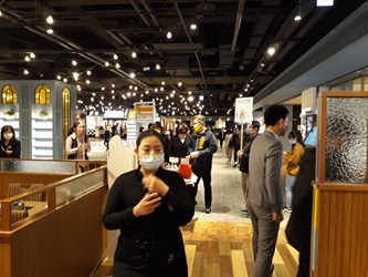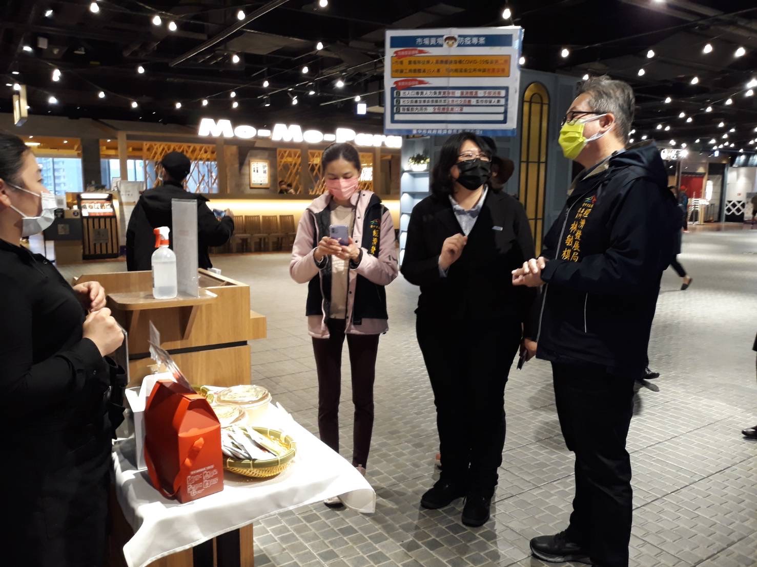 近期本土疫情新增數起不同場域且感染源待釐清的群聚事件,台中市政府持續強化各行業防疫措施,經濟發展局於清明連假期間加強防疫宣導,今(3)日由專門委員林敏棋再度率隊前往百貨賣場宣導防疫措施,要求業者管控社交距離,並落實實聯制、量體溫、手部清潔消毒,也提醒現場民眾試吃、用餐完畢應儘快戴上口罩,現階段做好自我防疫,絕不可輕忽,守護大家健康。