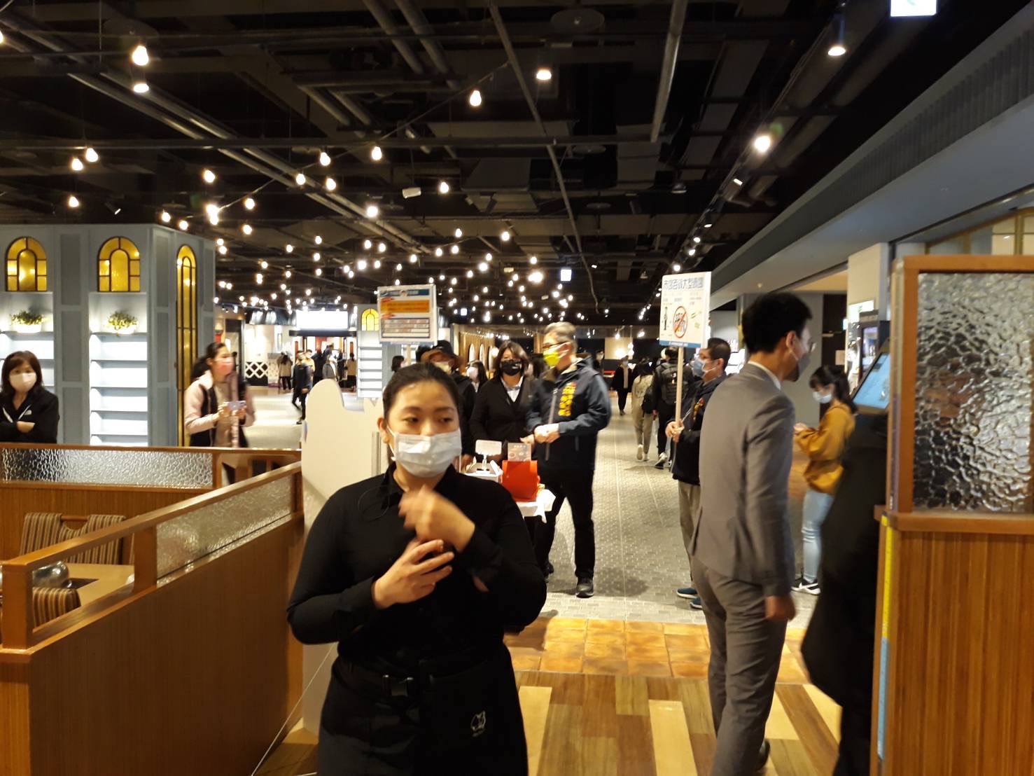 經發局今日中午前往南屯區秀泰生活文心店宣導防疫措施,業者除落實員工健康管理、顧客進場管理外,針對人流聚集或交易尖峰時段,業者也會增派人員加強距離標示並疏導,並提高廁所及公共區域清消頻率,六樓餐廳自助吧內,於顧客取菜前也提供顧客手部清潔措施等防疫措施。