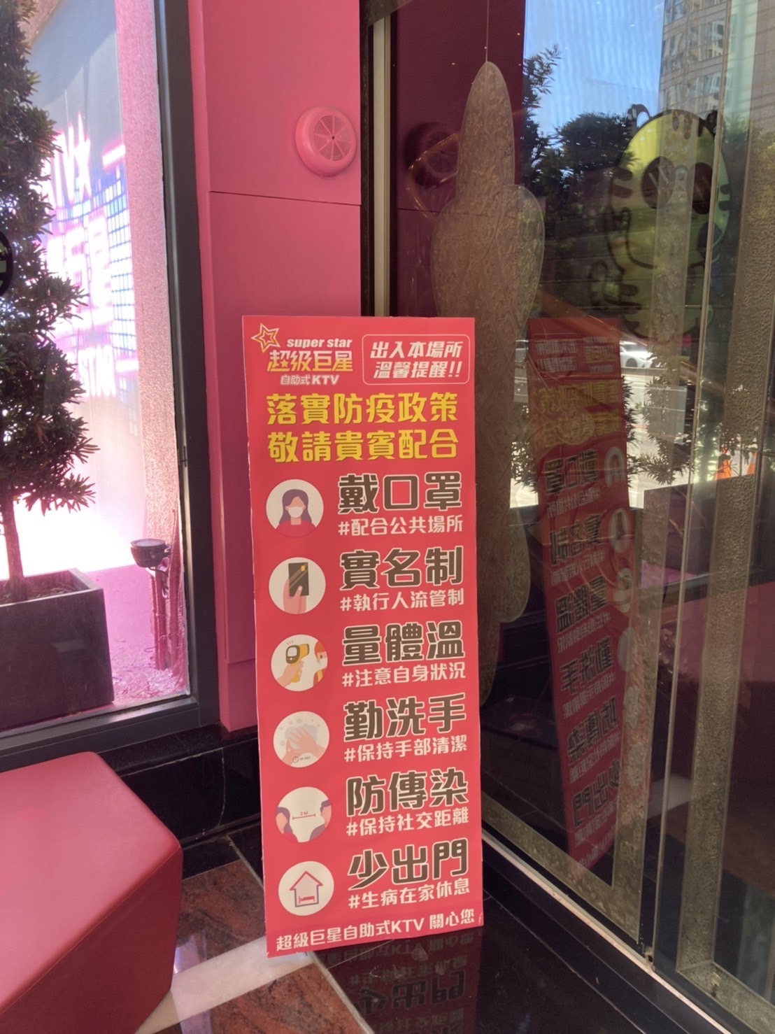 經發局說明,今日查核結果,業者除要求進入場所的顧客落實實聯制並進行量測體溫及提供酒精消毒等防範措施外,對於現場從業人員及顧客經常接觸的公共設施如洗手間等,還有顧客消費使用後器具、設備,包含包廂、麥克風、視聽設備、座位等環境及物品進行定期加強清潔消毒;在營業時間內也派員巡查顧客配戴口罩情況,並針對從業人員接種疫苗造冊,落實健康管理。