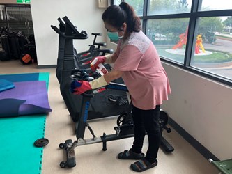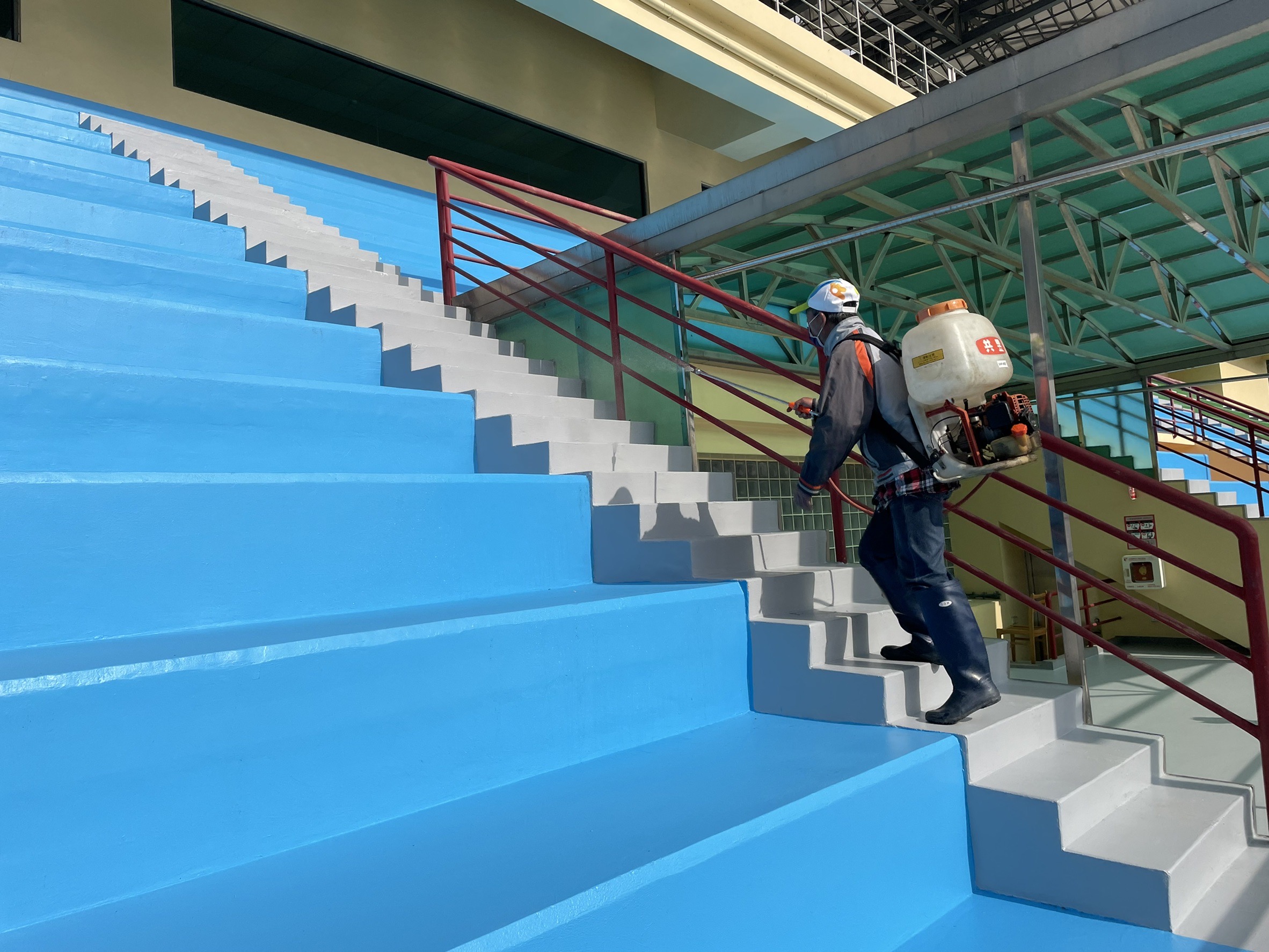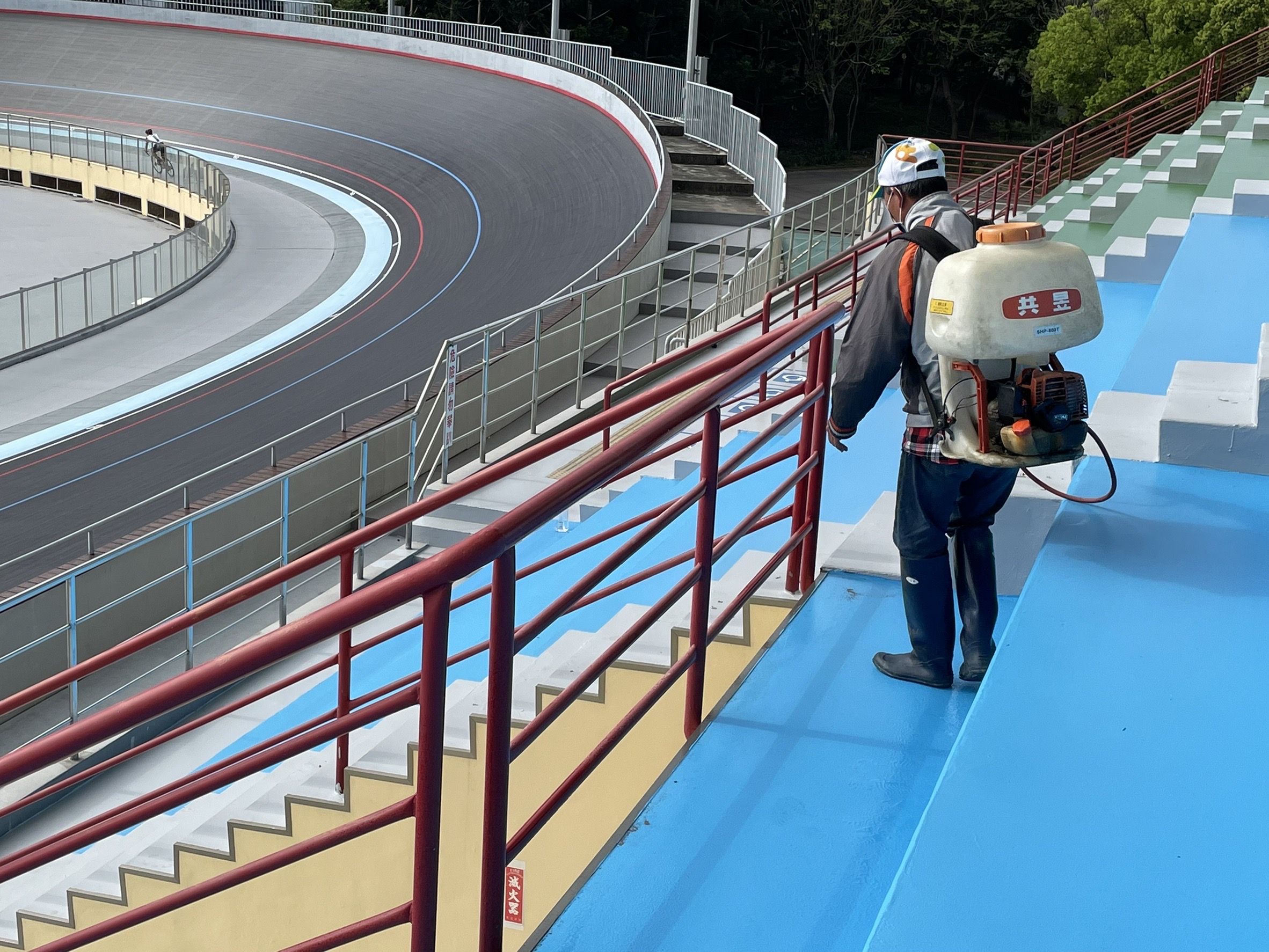 運動局補充說明,為迎接全國中等學校運動會自由車場比賽,市府持續清潔維護並搭配次氯酸消毒液噴灑標準程序擴大消毒,包括路過頻率高的出入口及步道、座椅及廁所也提高清消頻率,確保戶外室內運動場域完成清消,期盼台中隊於全中運自由車場地賽爭取優異成績,為台中爭光。(4/5*16)*運動局