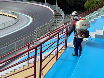 111年全國中等學校運動會自由車項目今(8)日於台中市清水自由車場熱鬧登場,賽事期間依據全中運籌備處防疫規定辦理。運動局長李昱叡今日至現場視察防疫工作,並頒發高男組自由車團隊競速賽冠軍,他表示,因應近期國內本土疫情升溫,運動局全面清消自由車場並落實防疫措施,這次賽事採「閉門賽」方式辦理,賽事所有人員需憑證入場。