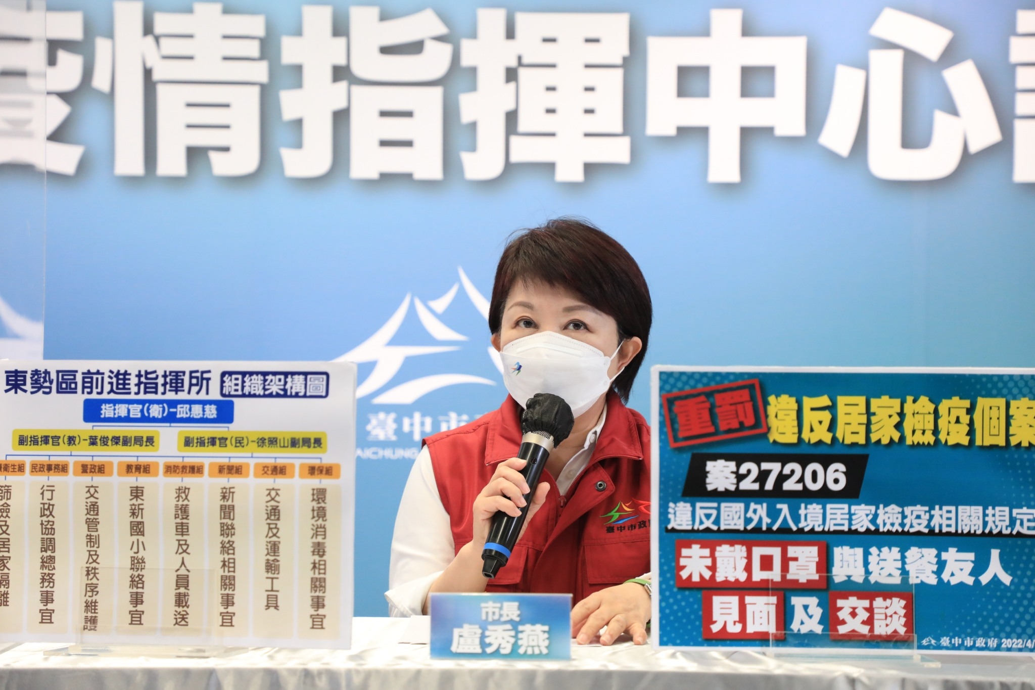 因應疫情持續升溫,東勢地區也出現校園群聚事件,盧市長呼籲,第一,鑒於疫情狀況嚴峻、不可預知且個案無一致模式,即日起,非工作與必要活動,呼籲市民朋友加強自律、儘量減少外出,好好待在家就是守護健康、防疫英雄;第二,即日起東勢各大活動應暫停舉辦,先從市府做起,各局處在東勢地區舉辦的活動,暫緩或停止辦理,希望民間活動也儘量減少辦理,「市府寧嚴勿鬆,唯有確實遵守防疫規定,才能確保城市安全!」