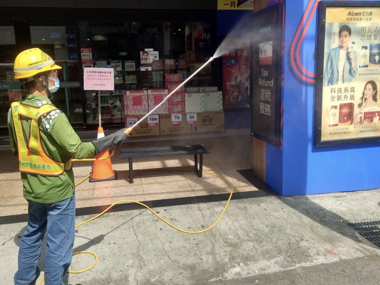 環保局說明,除有防疫消毒大隊執行戶外公共區域環境清消,民眾平時室內環境消毒也很重要,請高風險場域業者及市民牢記「5055消毒法」,即以市售漂白水稀釋50倍、抹布浸泡5分鐘、每5小時擦拭1次,消毒室內及場域周邊經常碰觸的物體表面,可大幅減少病毒在室內環境傳播污染風險。