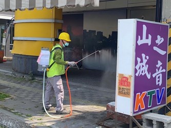 環保局長陳宏益表示,最近確診個案感染地點多以餐廳、卡拉OK(附設餐飲)等民眾會脱下口罩且為室內場域為主,環保局緊急啟動全市高風險場域防疫消毒專案,預計出動逾百位防疫消毒大隊同仁、50台次消毒車輛及噴霧機等機具。