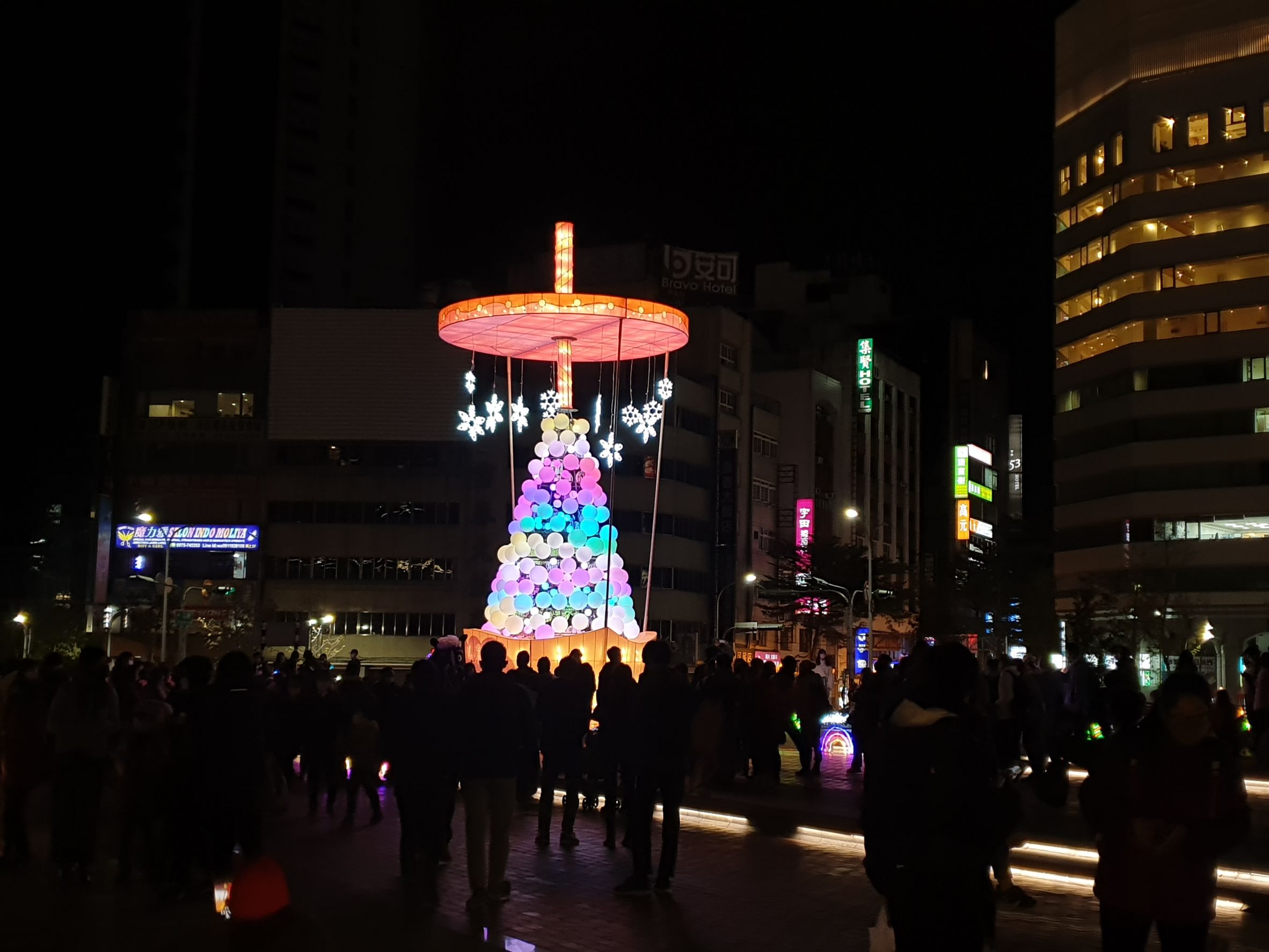 新聞局表示,耶誕節向來是民眾期待的重要節慶,可平方工作室運用台中在地文化元素-珍珠奶茶,設計成大型裝置藝術,獲得民眾好口碑,成為熱門打卡景點,成功為台中進行城市行銷,也為耶誕活動增添不同風采。根據統計,去年耶誕活動17天的展期,共吸引超過79萬人次造訪,為台中帶來9.48億元的經濟產值。