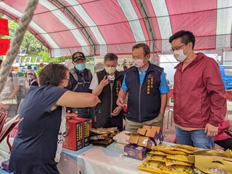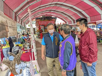 推廣在地畜產品!台中市政府農業局長蔡精強今(16)日到場支持台中市養鹿協會在北屯區東山廣場舉辦的「111年度鹿茸節暨畜產品促銷活動」,並邀請養豬協會、養雞協會、養羊協會等畜牧團體共同參與,以凝聚台中市畜牧產業合作交流,也可免費外帶鹿茸燒雞酒品嘗及欣賞一連串表演,現場更以優惠價格行銷品質優良的鹿茸酒、鹿肉香腸、豬肉乾、甘蔗雞、羊奶等產品。