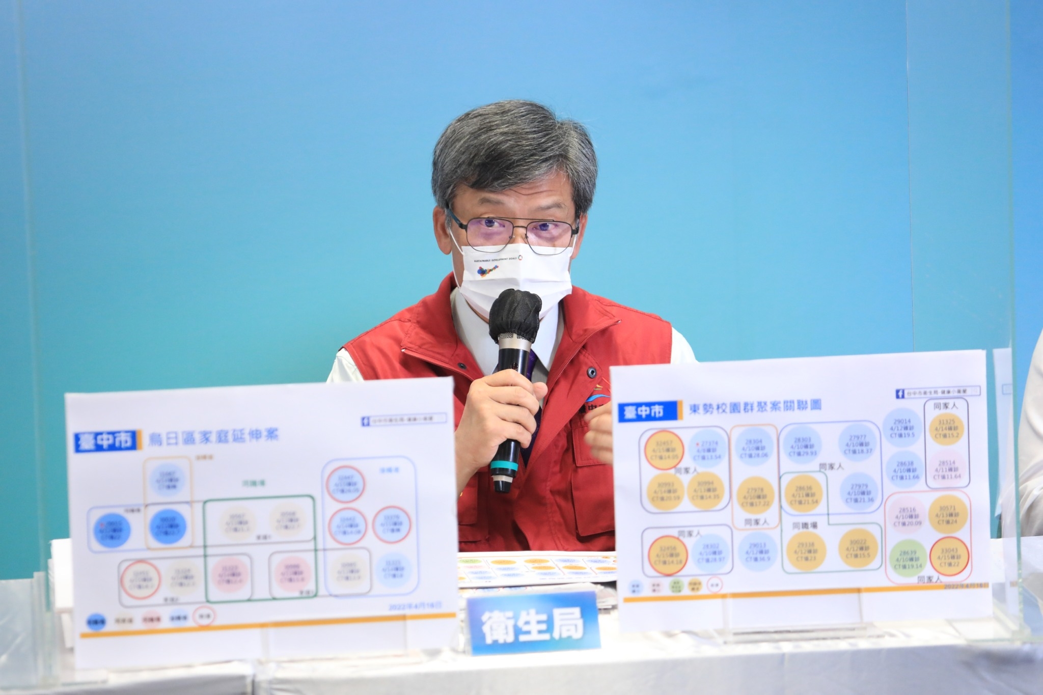 衛生局長曾梓展指出,經過疫調,依感染源將台中市今日本土確診個案分為四類,第一類外縣市足跡或接觸確診者,包括案號32333、32336、32445、32449、32452、32455、32460、32508、33040、33042、33047;第二類已知群聚案,包括案號32334、32340、32442、32444、32446、32447、32448、32450、32451、32453、32454、32456、32457、32458、32459、32461、33039、33041、33043、33044、33045、33046、33376;第三類密切接觸確診者,包括案號32332、32335、33375、33377;第四類感染源不明或疫調中的確診案,包括案號32443;另案號33374無台中市足跡,後續將轉為外縣市個案。