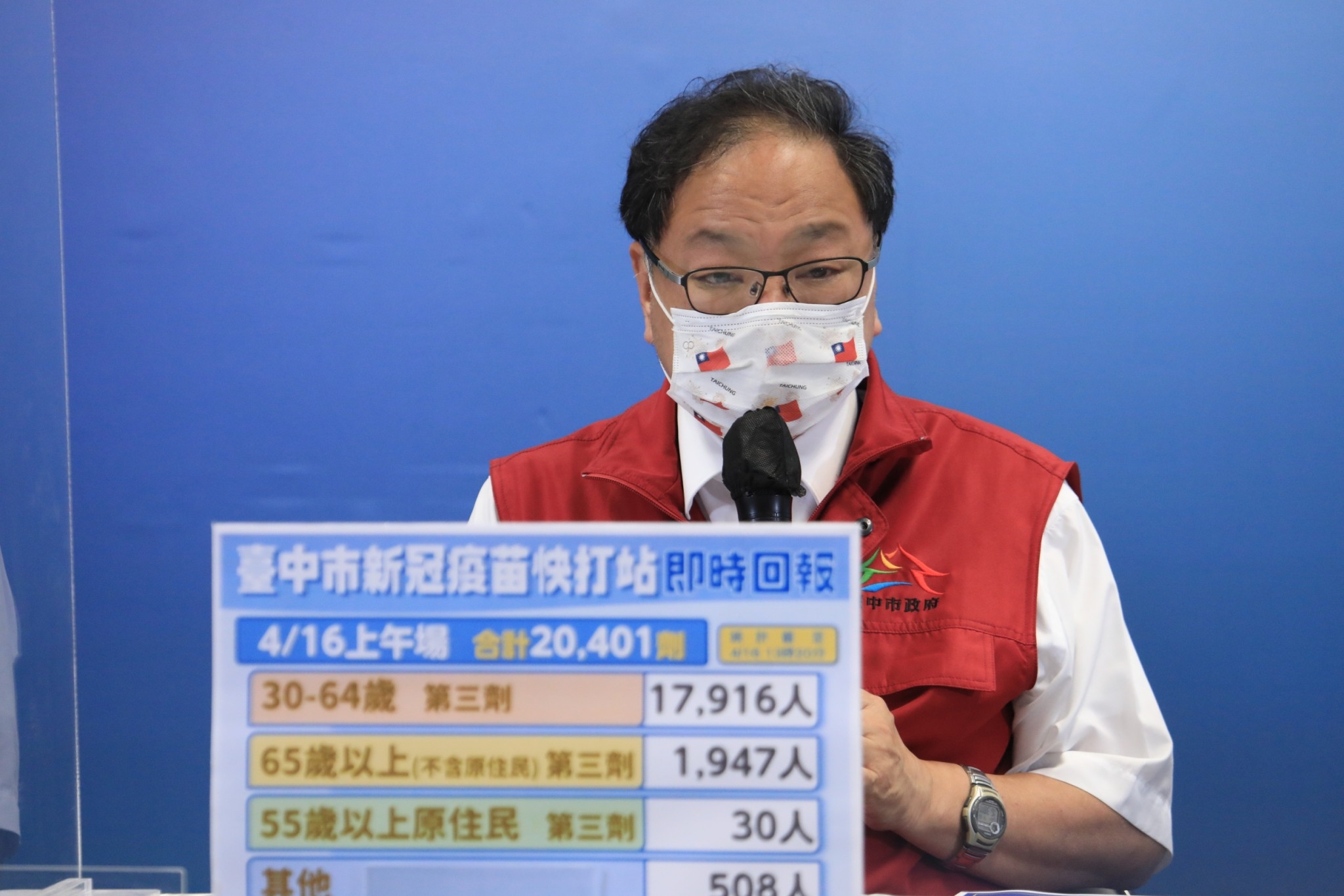 台中市今(16)日新增40例本土確診個案,不過有1例已轉給外縣市,實際上是39例。今日新增感染案例分為四類,包括外縣市足跡或接觸確診者新增11例、已知群聚案新增23例、密切接觸者增4例、感染源不明或疫調中新增1例。市長盧秀燕今日召開防疫記者會表示,全國新增確診破千例,疫情持續升溫,台中市民疫苗需求大增,4月16日及17日今明兩天,台中首次將快打站服務向下開放到30歲以上,讓市民可利用假日施打第三劑莫德納,北屯區再加開一天至18日,3日共開設48處快打站、167場次,今天總計接種37,386人完成施打,也歡迎民眾拿到疫苗接種單後依照指定時間及地點前往施打。