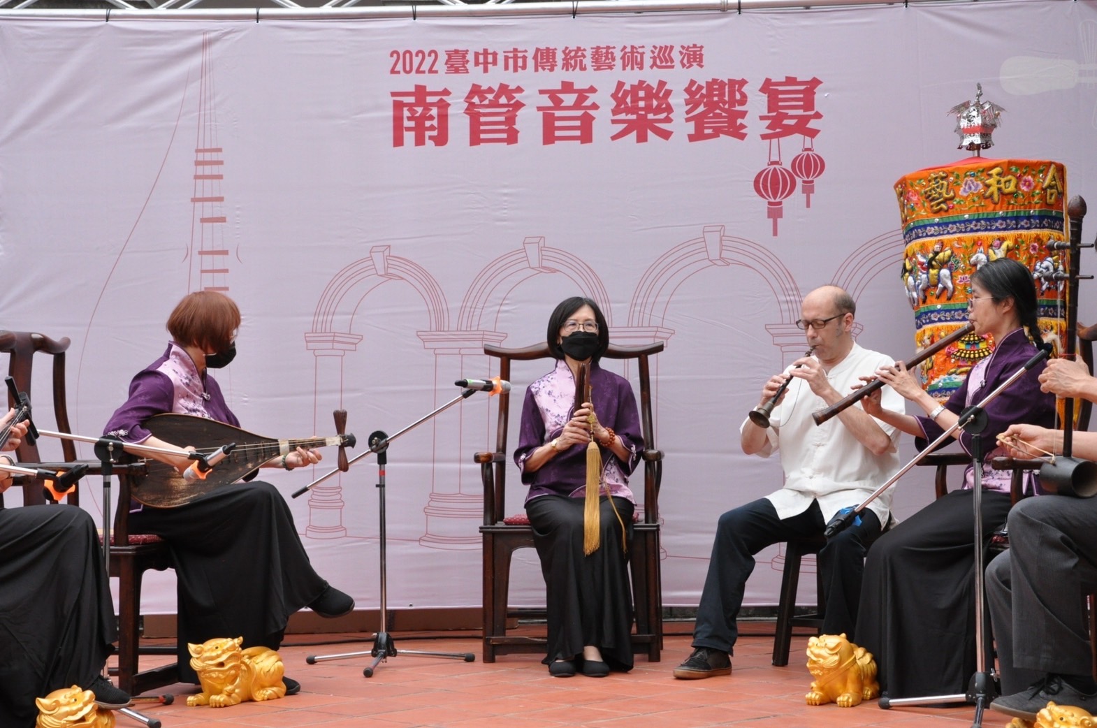 已連辦3年的台中傳統藝術巡演,今年活動昨(16)日在台中市歷史建築林懋陽故居(一德洋樓)進行首場表演!由人間國寶-林吳素霞藝師帶領「合和藝苑」演奏多首南管樂曲,民眾悠閒歇坐在林懋陽故居內埕,聆賞精緻的音樂表演。文化局長陳佳君代表市長盧秀燕出席表示,希望以跨界連結傳統表演藝術及歷史建築氛圍,讓民眾近身感受文化資產的魅力。