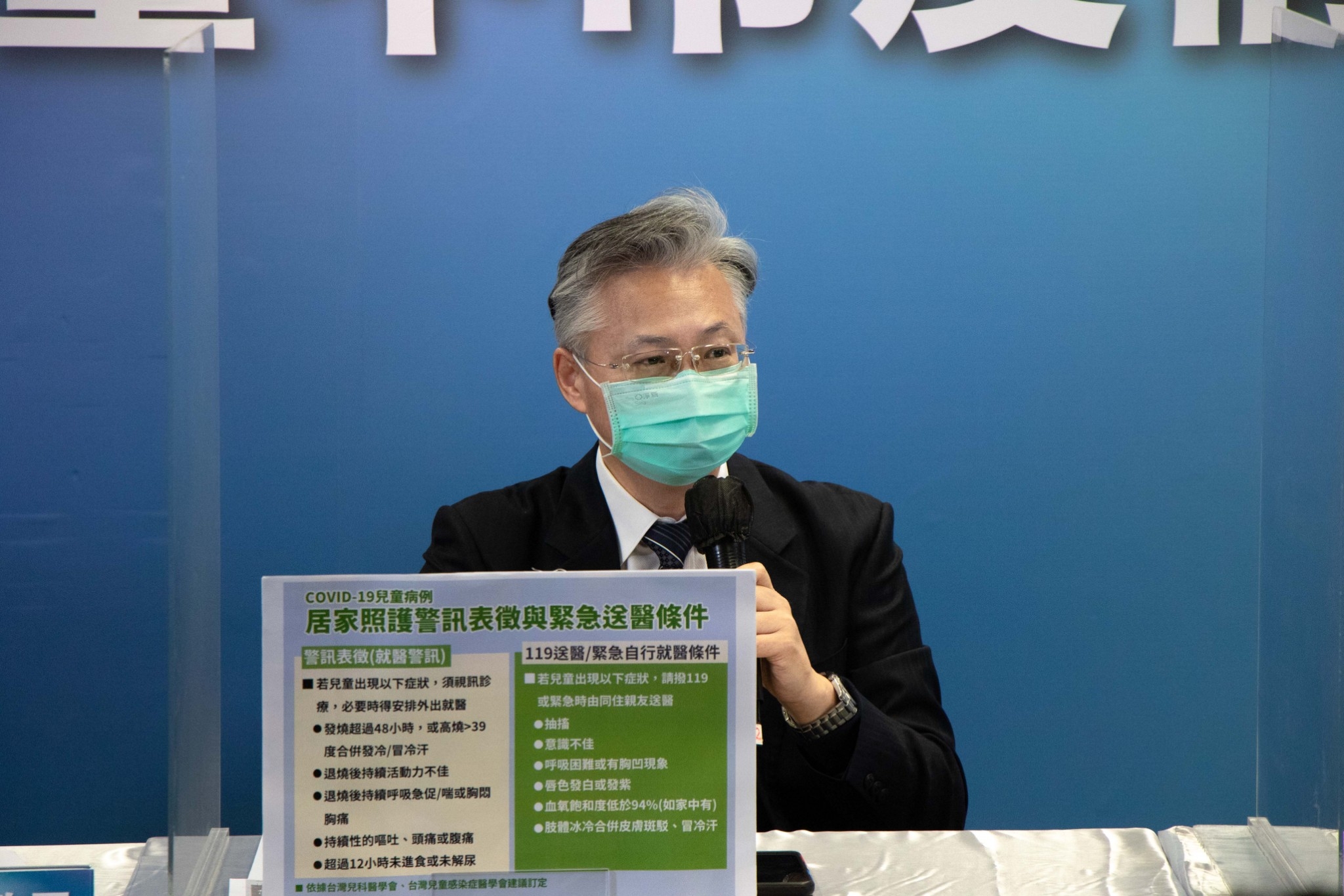 傅副院長指出,隨著疫情加劇,許多兒童需要居家照護,國外感染Omicron的兒童大多為無症狀或輕症,只要居家照護即可;針對少數重症者,昨日台灣兒科醫學會、台灣兒童感染症醫學會共同訂定「COVID-19兒童確診病例居家照護警訊表徵與緊急送醫條件」,若兒童出現以下症狀建議視訊診療,必要時安排外出就醫:一、發燒超過48小時,或高燒超過39度合併發冷、冒冷汗;二、退燒後持續活動力不佳;三、退燒後持續呼吸急促、喘或胸悶、胸痛;四、持續性的嘔吐、頭痛或腹痛;五、超過12小時未進食或未解尿。