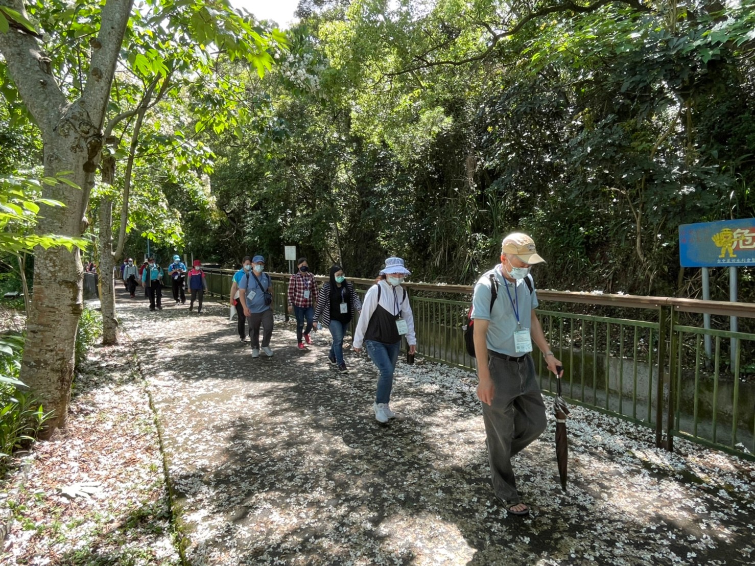 客委會表示,今日活動配合防疫政策,參與輕旅行民眾皆需提供接種3劑疫苗證明;現場人員並手持防疫宣導牌走動式宣傳「全程戴好口罩,保持安全社交距離」。活動由市府客委會主委江俊龍主持,中央客家委員會處長廖美玲、市府財政局長羅仙法、建設局長陳大田、市議員張瀞分、外埔區公所主任秘書白植杰及立法院副院長蔡其昌服務處主任林秀緞等人,皆到場與遊客一起欣賞美麗的四月雪。(4/23*13)*客家事務委員會