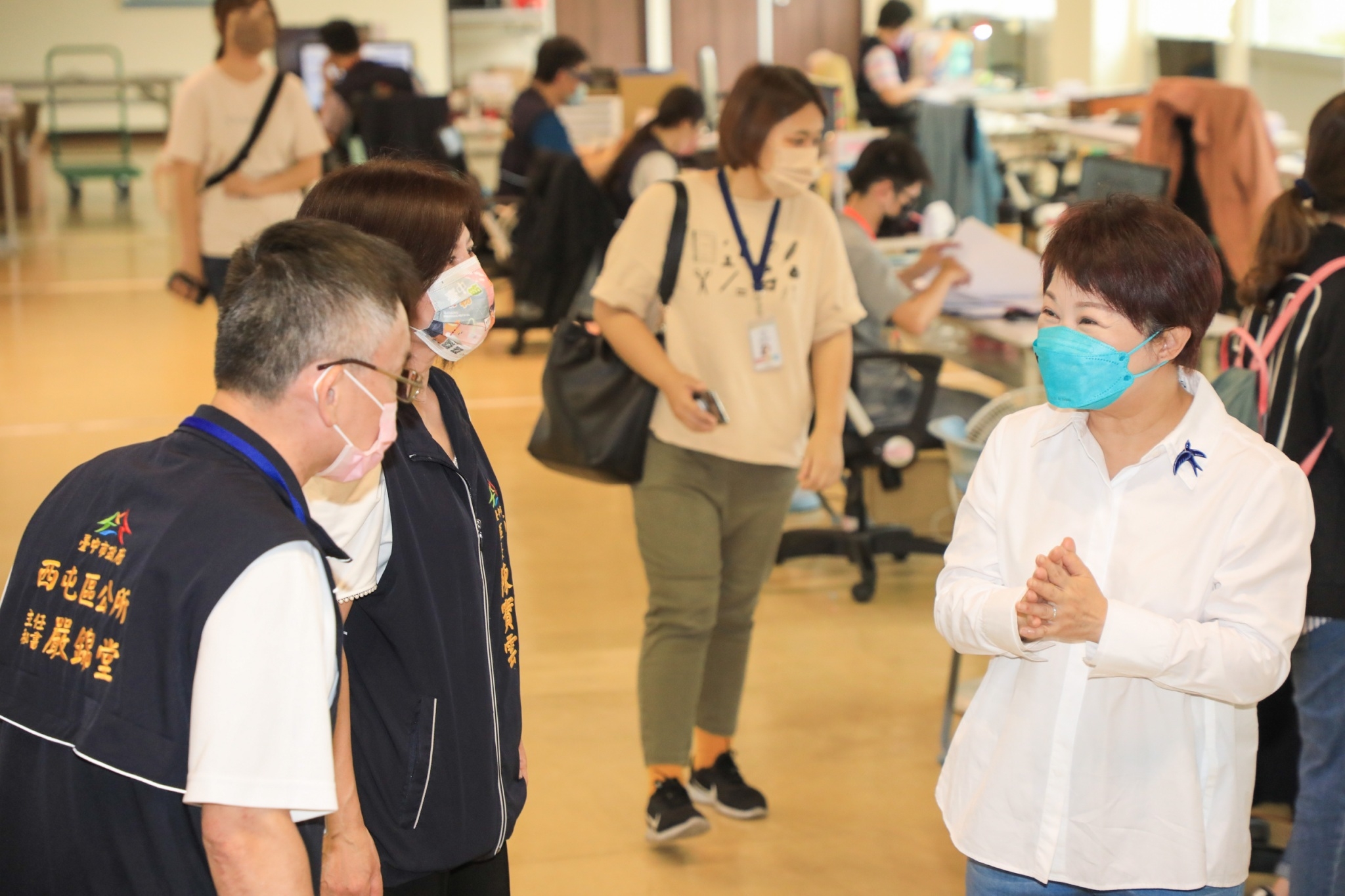 盧市長表示,居家照護民眾一天至少會接到兩通電話,除台中委託的15家醫院外,也會有區公所的來電關心,經過她撥打電話測試,對於居家照護民眾提出的基本需求,市府都可即時協助,感謝同仁日以繼夜守護市民;另外,西屯區公所防疫周延,同仁分成AB組作業,除區公所3樓辦公外,還有7樓的寬敞空間落實分艙分流,也呼籲民眾落實居隔配合防疫政策,詳實回報匡列人數,一起度過疫情高峰。
