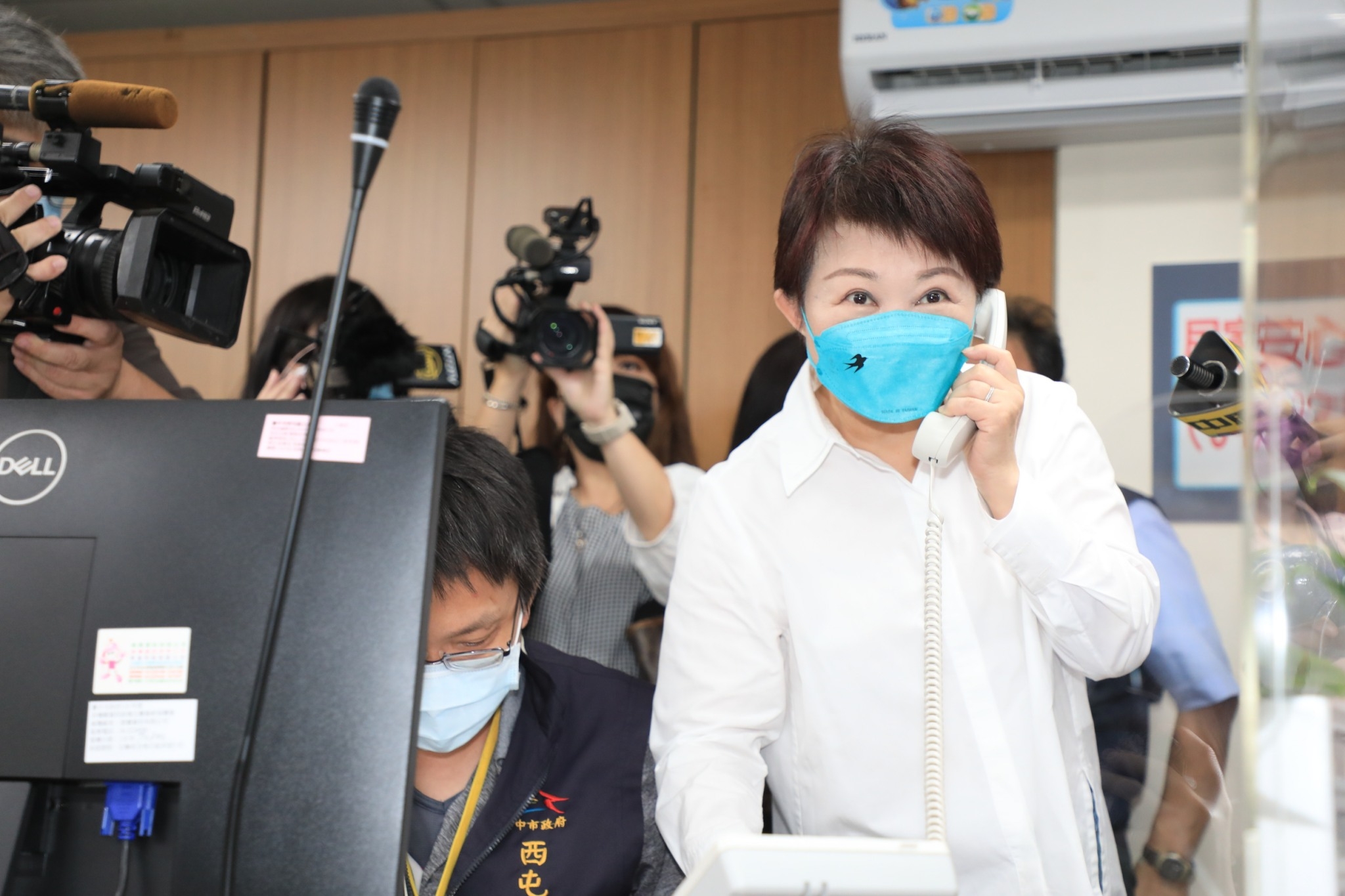 國內疫情延燒,因應輕症或無症狀者居家照護成為重要防疫模式,台中市政府啟動29區「居家安心照護關懷中心」,跨局處調派人力支援。市長盧秀燕今(27)日前往西屯區公所關懷中心視察,除為防疫同仁打氣,更親自撥打電話關心居護民眾,並介紹泡麵、快篩試劑、體溫計等關懷包物資,示範如何使用血氧機,協助民眾度過疫情高峰。