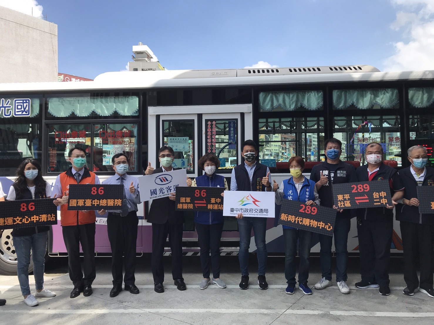 台中市政府交通局推動健康公車服務,新闢86路「台中車站-國軍台中總醫院-台中車站」,今(29)日中午12時起通車營運,是國光客運於台中市營運的首條定線定班市區公車路線,沿線串聯國軍台中總醫院與國軍台中總醫院中清分院、數間學校、社區、捷運車站及台鐵車站,可提供民眾通勤通學及就醫需求,歡迎有需求者多加利用。
