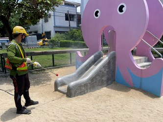 環保局說明,為優先保護11歲以下尚未施打疫苗的兒童健康,自即日起啟動「兒童常出入場域防疫清消專案」,每周派員加強台中市轄內小學、幼兒園、兒童遊戲場所及小兒科診所等629處場域周邊戶外公共環境消毒,全力圍堵疫情擴散機會。後續也會隨時視疫情發展啟動各項清消專案,消毒行程都會預先公布於「消毒地圖」( https://bit.ly/2RZ1BLA ),資訊公開透明,歡迎民眾查詢。