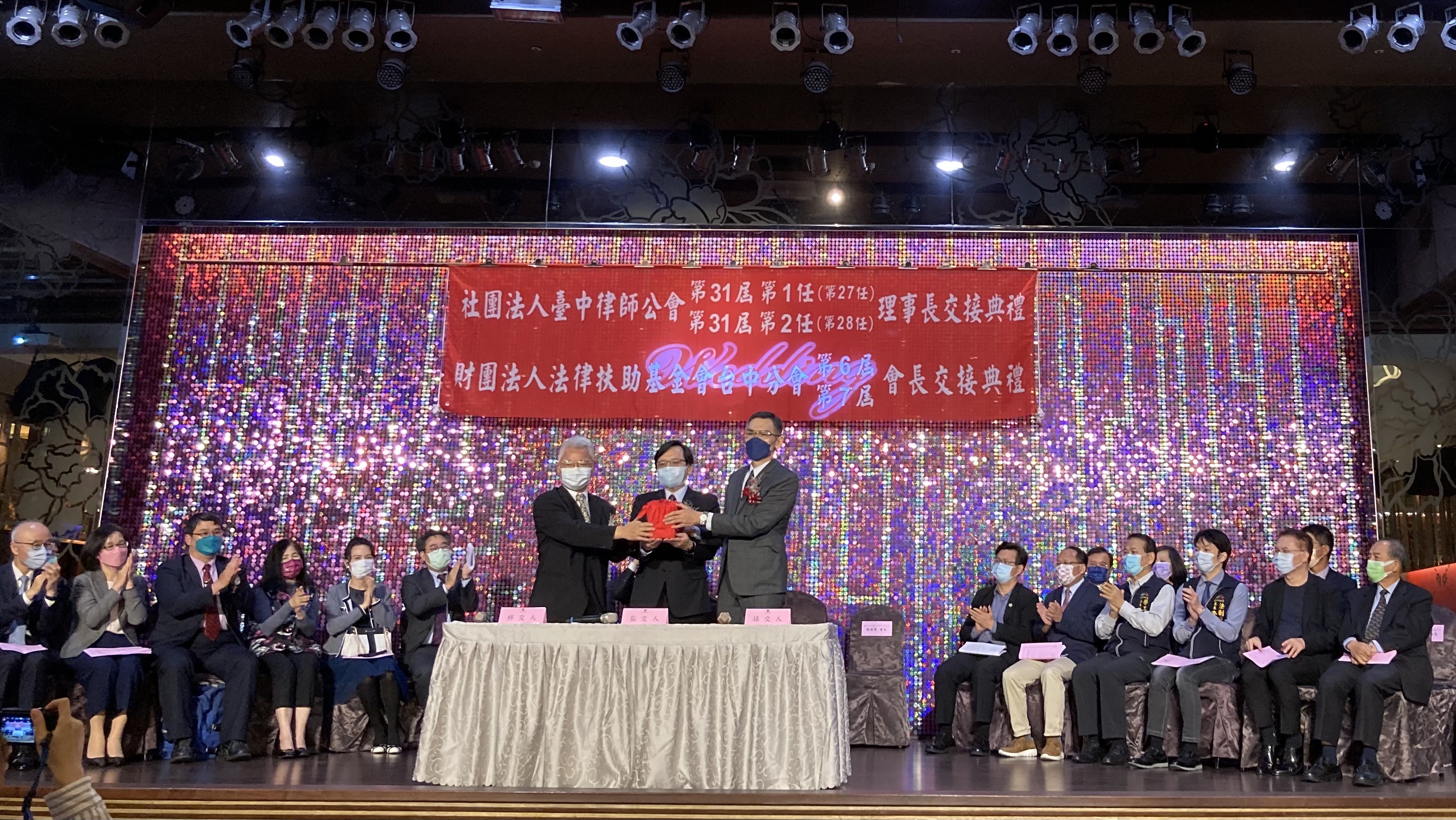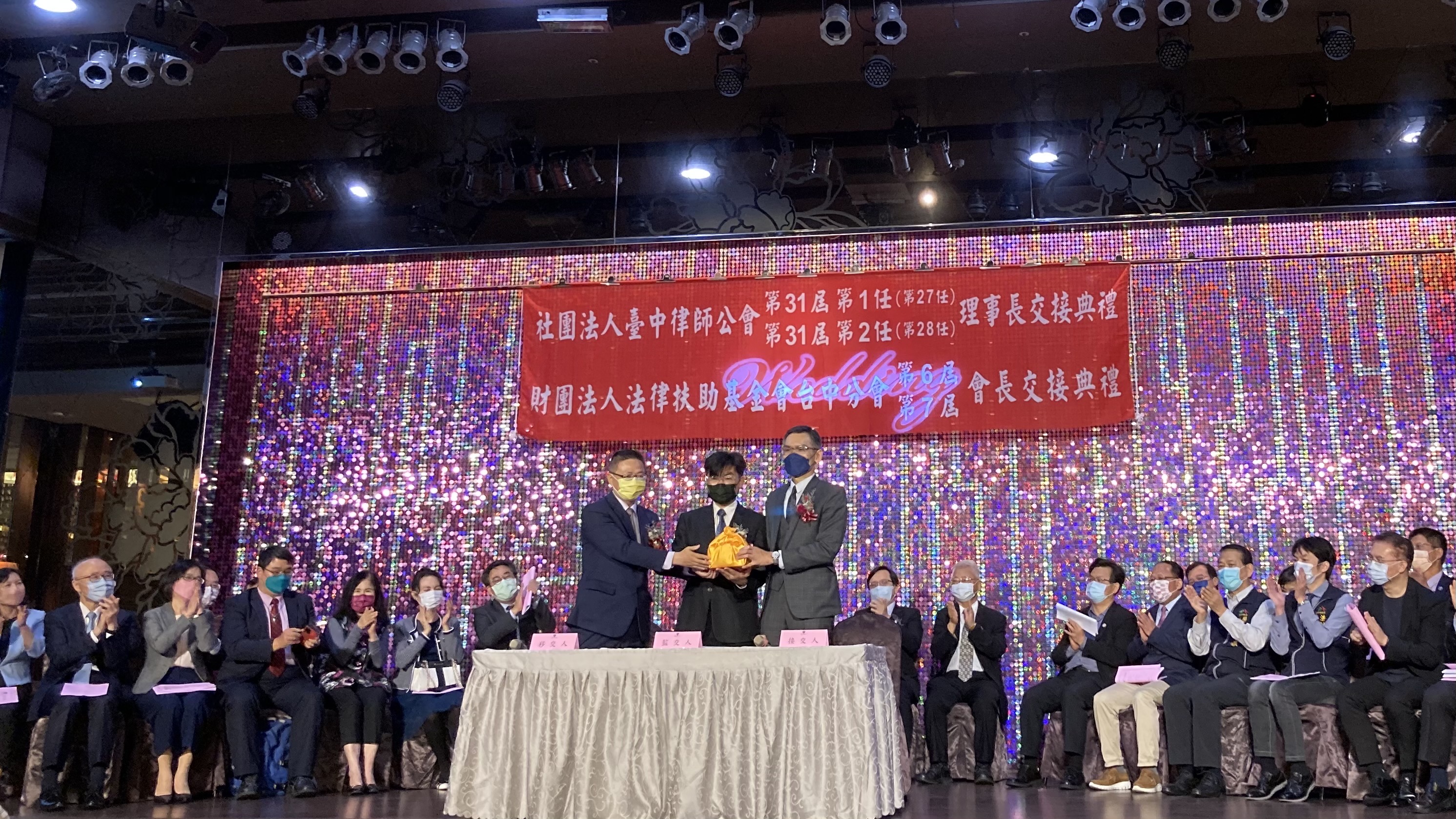 台中律師公會第31屆第1任理事長盧永盛昨日將理事長印信交付第31屆第2任理事長楊大德;法扶基金會台中分會亦由會長趙建興將會務同時接棒給新任會長楊大德。此為司法界盛事,多位市府及司法界人士共融其中,共同見證兩會完成交棒,典禮溫馨隆重。