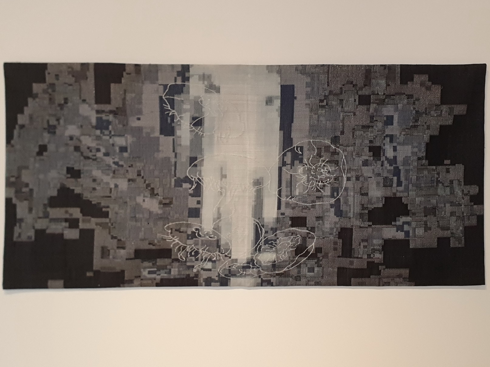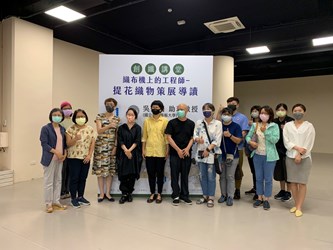 吳佩珊老師於講座中提到,從數百年前的傳統織布機到現代的提花機,可以看到人類歷史的演進,尤其提花織布機在現代科技的加持下,使用的材質和編織的方式更跳脫傳統織布機的束縛,甚至成為藝術家的創作方式,如黃文英老師的作品、纖維工藝展演中心館藏的《金色軍裝》,以及展場內展示邱敬婷老師的《浮游之城》,都是運用提花機進行創作。