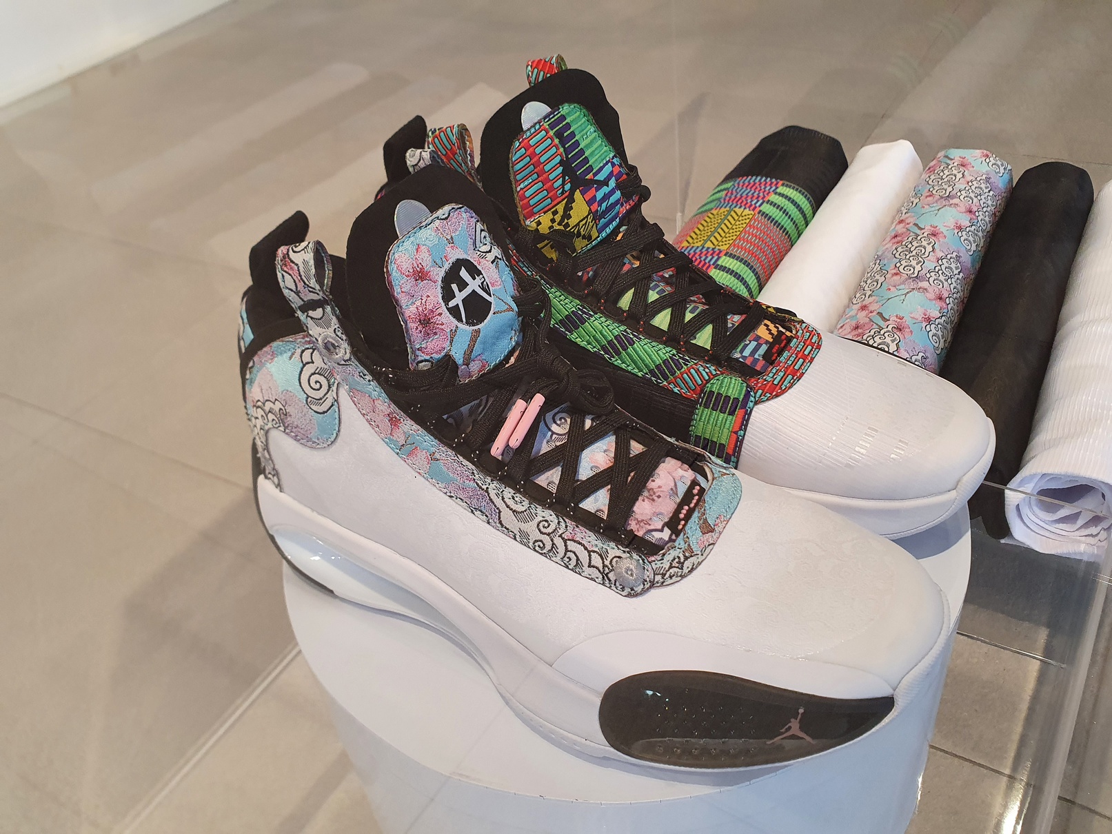 展覽現場除有「TC-1電腦提花織布機」,也安置一台大型的7段顯示器,民眾可以利用7個「on」和「off」按鈕,按出0到9的十個阿拉伯數字,體驗提花織機如何透過「0與1」的電腦語言運作邏輯,織出多彩多姿的花樣。