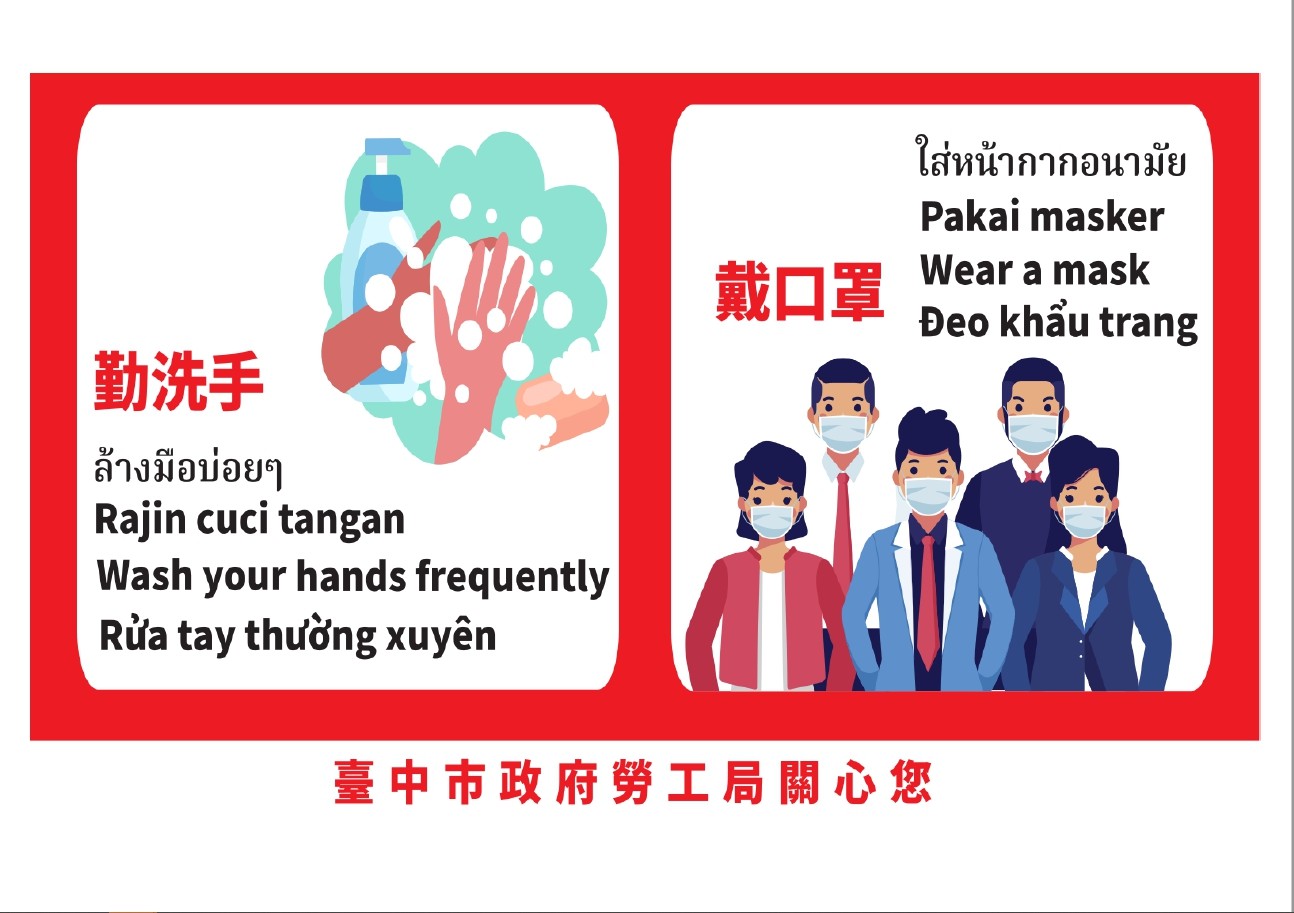 勞工局呼籲,雇主及仲介公司應持續留意最新規定並落實辦理。有關移工防疫資訊及多國語宣導資料,可至勞動部勞動力發展署跨國勞動力權益資訊維護網站查詢。如有移工防疫相關問題,可電洽勞工局專線04-22289111分機35500。(5/8*8)*勞工局