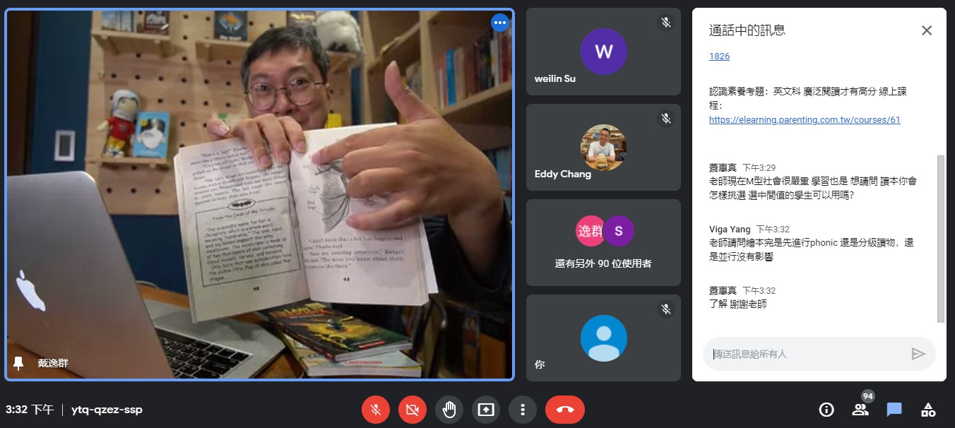 中市圖說明,今年除了再度邀請獲百大創意翻轉教師戴逸群,還有張采聿、李海碩、王琇嫻等多位老師,辦理橋梁書導讀、短篇小說導讀、數位學習應用、西洋歌曲欣賞及原創英文故事等。此外,大安分館規劃自然生態保育主題式英語閱讀;大肚瑞井分館與靜宜大學教師為弱勢兒童合作規劃一系列生活英語課程。中市圖各館也有外籍老師說英語故事,在總館每週四安潔及Jean老師為學齡前幼兒講述英語繪本故事,深受親子家庭喜愛。