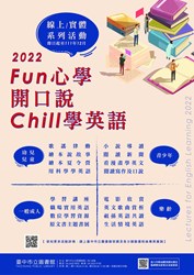 台中市立圖書館去年舉辦英語閱讀推廣活動,總計300多場活動共累計近3萬多人次參與,今年再度以「FUN心學、開口說-Chill學英語」為主題,擴大為39間圖書館全面辦理,共規劃近600場實體與線上英語學習活動,以生動易懂的方式,結合圖書館英語館藏資源及線上電子書等,為各年齡層民眾量身打造學習主題與內容,歡迎民眾多多利用中市圖的多元英語學習管道,一起開心學英語!
