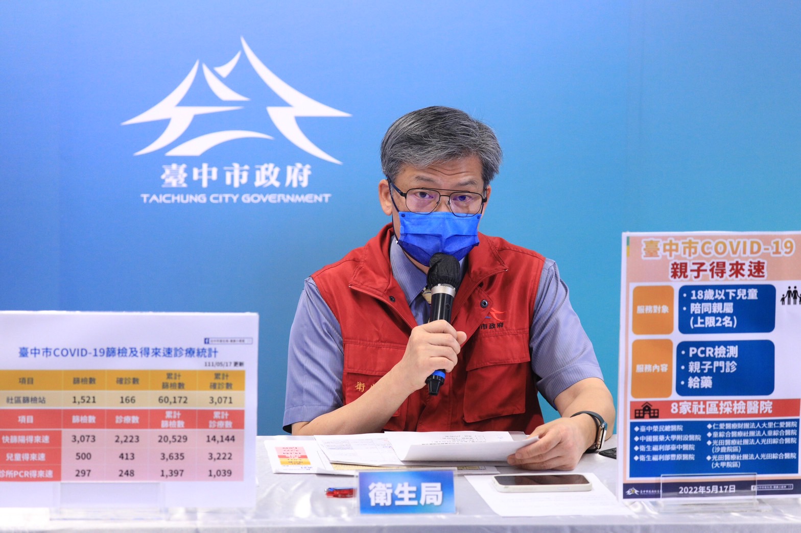 全國今(17)日本土確診新增6萬5794例,台中市本土個案新增4770例。市長盧秀燕今日於線上防疫記者會表示,明日起,兒童得來速優化升級為「親子得來速」,服務18歲以下的兒童與青少年,以及2名陪同親屬,透過獨立的親子動線,提供PCR檢測、安排家醫科醫師問診、給藥,讓親子免去重覆排隊,體貼需要帶著兒童、有緊急就醫篩檢的家庭。