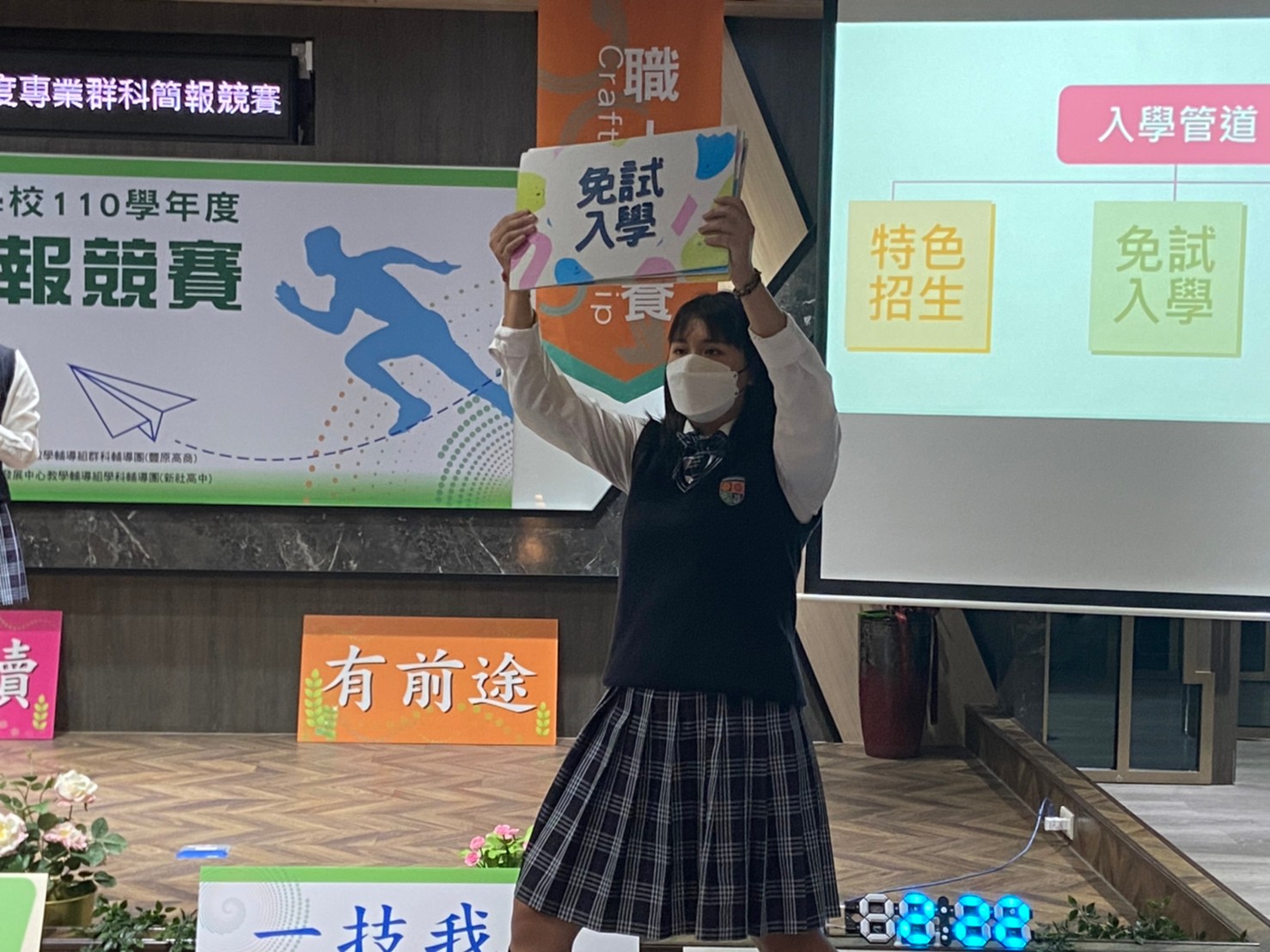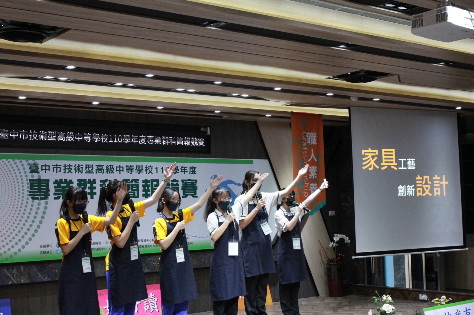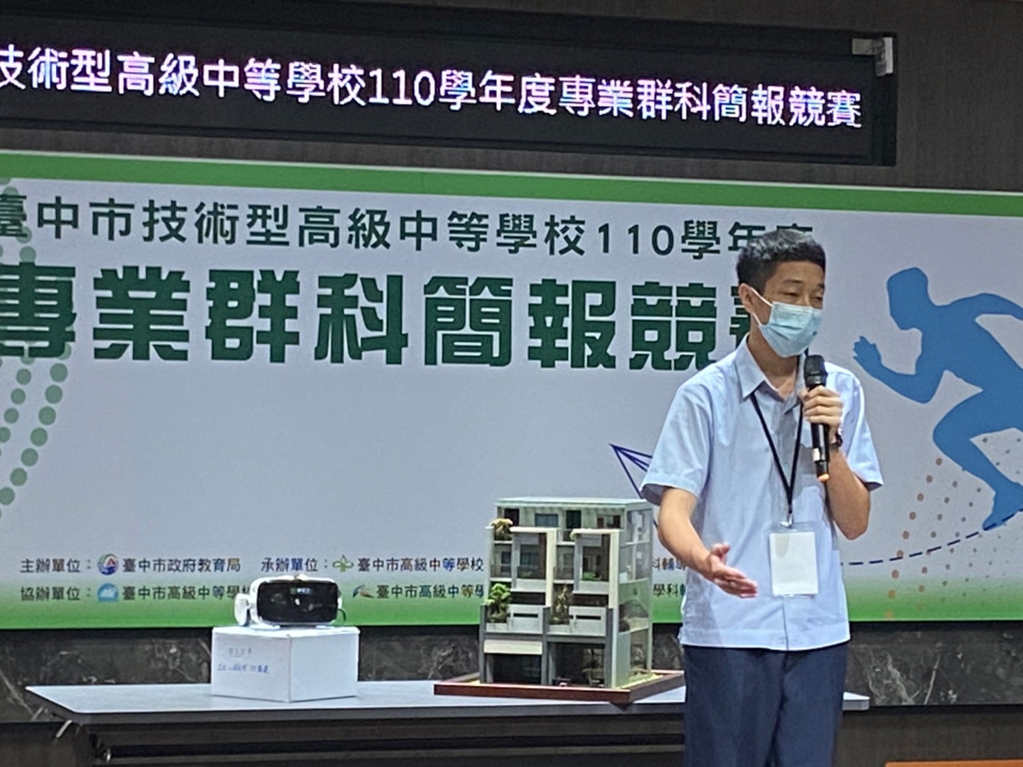 教育局長楊振昇說明,技術型高中師生「專業群科簡報競賽」由各校跨群科組隊、跨領域教師合作指導,讓不同領域、各具專才的學生彼此激盪,並邀請業界知名教師傳授學生簡報專業技能與魅力表達術,提升師生知能與自信心;今年因應疫情,競賽妥為規劃防疫措施,落實參賽隊伍分流及場地清消,要求參加人員戴口罩、勤洗手,確保參賽人員健康。
