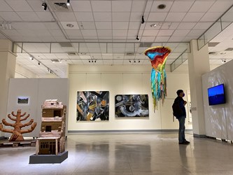 文化局長陳佳君代表市長盧秀燕出席開幕式時表示,盧市長上任以來重視文化施政,各項軟硬體積極並進。「藝術新聲」今年已邁入第九年,是全國唯一辦理的藝術系所畢業生精選作品展覽,藉由公部門、學術界及產業界攜手合作,為全國藝術新秀搭起展演平台,讓台灣當代藝術最有活力的新生代在台中匯聚,為台中累積更加豐沛的藝術能量。隨著綠美圖新建工程於日前完成上梁,未來台中市將擁有一座國際級的藝術舞台,為藝術家提供更好的展示空間。
