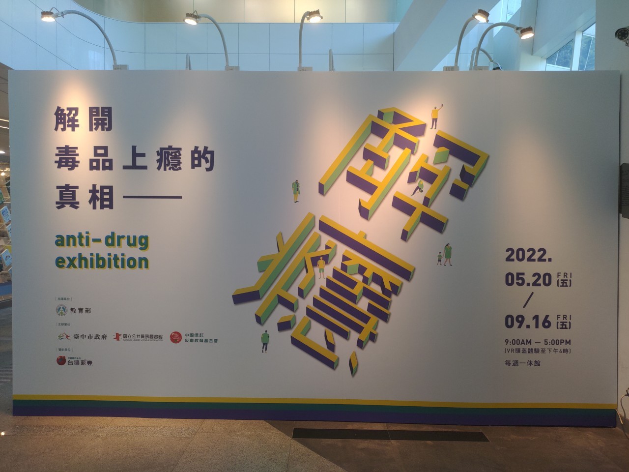 市府教育局指出,「解癮–解開毒品上癮的真相」於去年12月首度在台北市開展,今年初走過台南市,在國立公共資訊圖書館邀請下,即日起在台中市展出。雖然目前疫情嚴峻,反毒工作也不容忽視,希望民眾做好安全防護措施,在遵守防疫規定的情況下一起來看展覽、體驗實境解謎的遊戲,相信會滿載而歸。