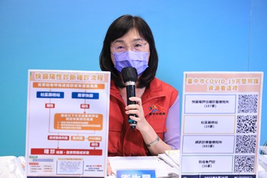衛生局副局長邱惠慈表示,中央已宣布「快篩陽經醫師診斷後確診」明起上路,民眾快篩陽性經醫師診斷後,就可以直接通報為確診個案,台中市已預先做好資源盤點及就醫流程。明日起民眾如有呼吸道症狀或感染風險,可先做居家快篩,篩檢陽性後,可透過以下方式讓醫生評估結果。