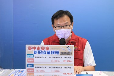令狐副市長指出,目前統計,家長對兒童BNT疫苗的施打意願高過兒童莫德納疫苗,台中市獲得中央分配9萬3000劑,已分配給醫療院所預約施打3萬3000劑,剩下6萬劑給校園統一施打,預計明天校園內就有第一波學生開始接種,超過800名學生施打兒童BNT疫苗。