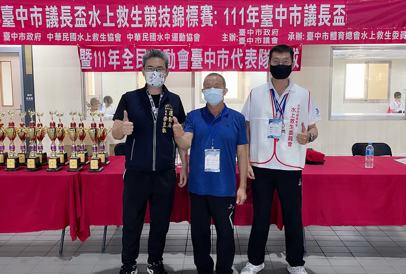 李局長表示,盧市長上任後,台中積極推動水上救生、蹼泳及游泳運動,充實相關器材設備、打造硬體設施友善的運動環境,也支持培育何品莉、葉亞書、王星皓、林姵彣、蔡秉融、朱宸平等優秀運動選手。109年全民運動會,台中代表隊在水上救生榮獲13金7銀1銅,蹼泳也抱回7金4銀4銅,成績勇冠全國,去年全國運動會也獲得7金11銀10銅的佳績,市府將持續支持水上救生及游泳運動,盼全民運旗開得勝、再創佳績。