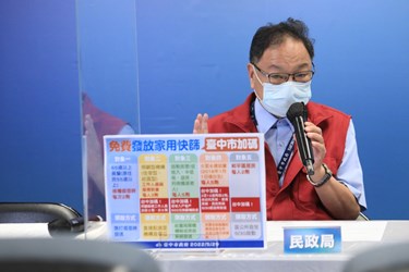 盧市長表示,中南部疫情還在高峰,這段時間非常多防疫措施,尤其校園及孩童疫苗施打部分,現在都在上線當中;快篩劑發放部分,台中市日前已宣布三波,中央昨日又宣布一波,因有許多不同發放時間,民眾可能較不清楚,台中市已整合相關期程內容,請大家注意相關資訊。