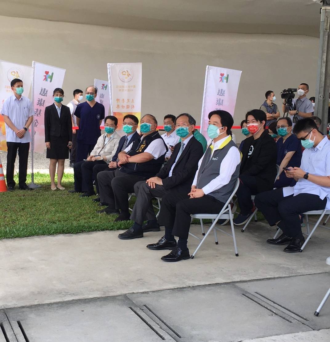 今日視察,包含副總統賴清德、副市長陳子敬、市府衛生局副局長邱惠慈、篩檢站副指揮官參議陳麗珠、輔導會副主委吳志揚、就醫處副處長陳延芳,台中榮總院長陳適安、副院長傅雲慶、副院長李政鴻、副院長吳杰亮、主任秘書姚鈺,以及立法院副院長蔡其昌、立法委員莊競程、何欣純、張廖萬堅、黃國書及台中市醫師公會理事長陳文侯等相關人員均到場慰問防疫人員。(5/29*16)*衛生局