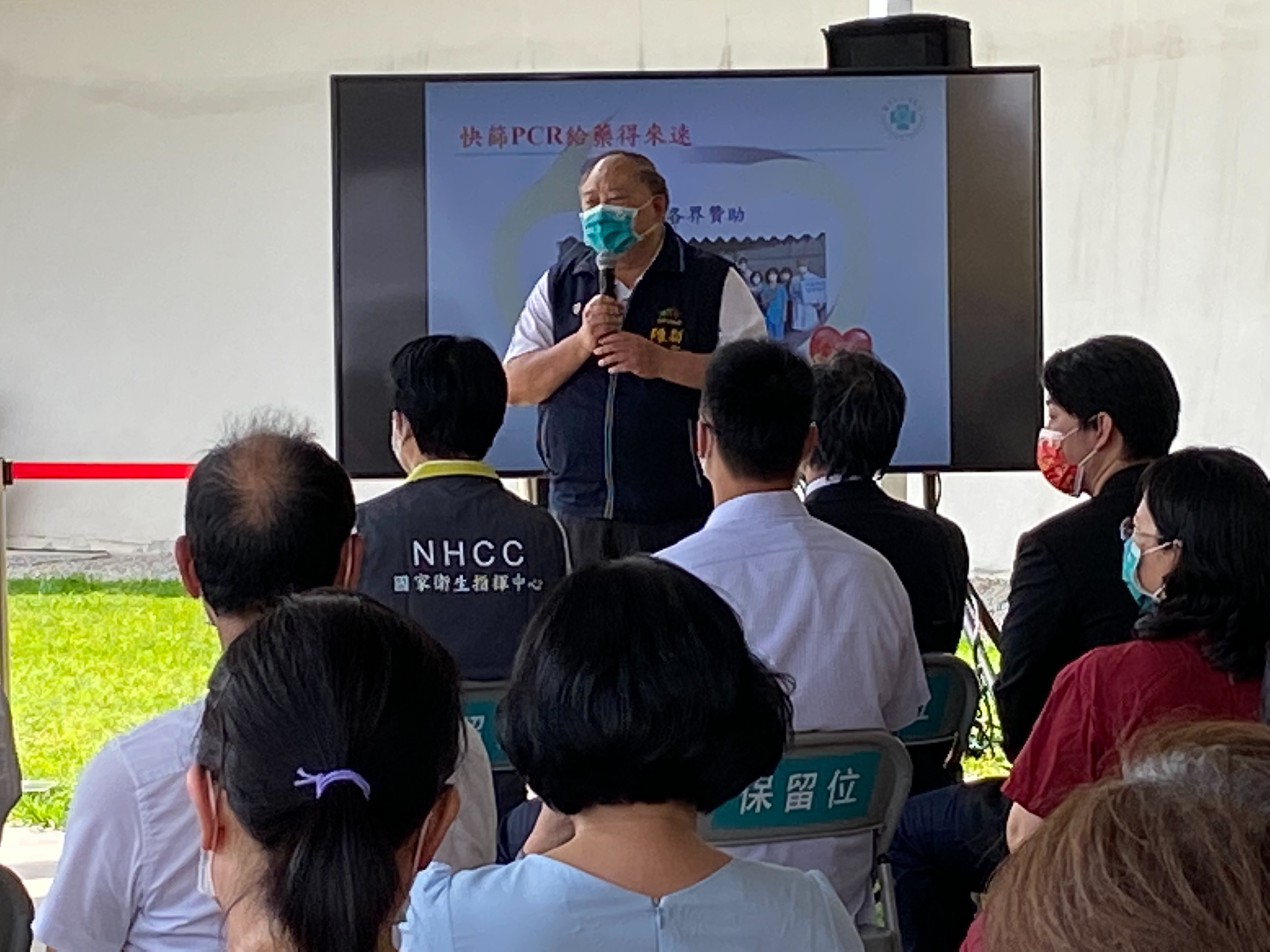 盧市長今日因另有市府防疫公務在身,指派副市長陳子敬陪同。陳副市長表示,隨著疫情持續升溫,全國確診數來到新高,為儘早讓快篩陽性的民眾獲妥善處置,特別聯合跨局處之力,包括建設局、民政局、警察局、消防局、交通局、環保局、研考會及衛生局等局處,投入人力、物力及經費,在2天內與台中榮總院長陳適安率領的中榮團隊共同完成開設中央公園得來速,5月20日正式開辦;而因應快篩陽經醫師診斷等同確診新政策上路,台中市也將原「PCR得來速」,全部轉型為「快篩陽確診得來速」,包含中央公園在內,為民眾確認、看診及給藥。