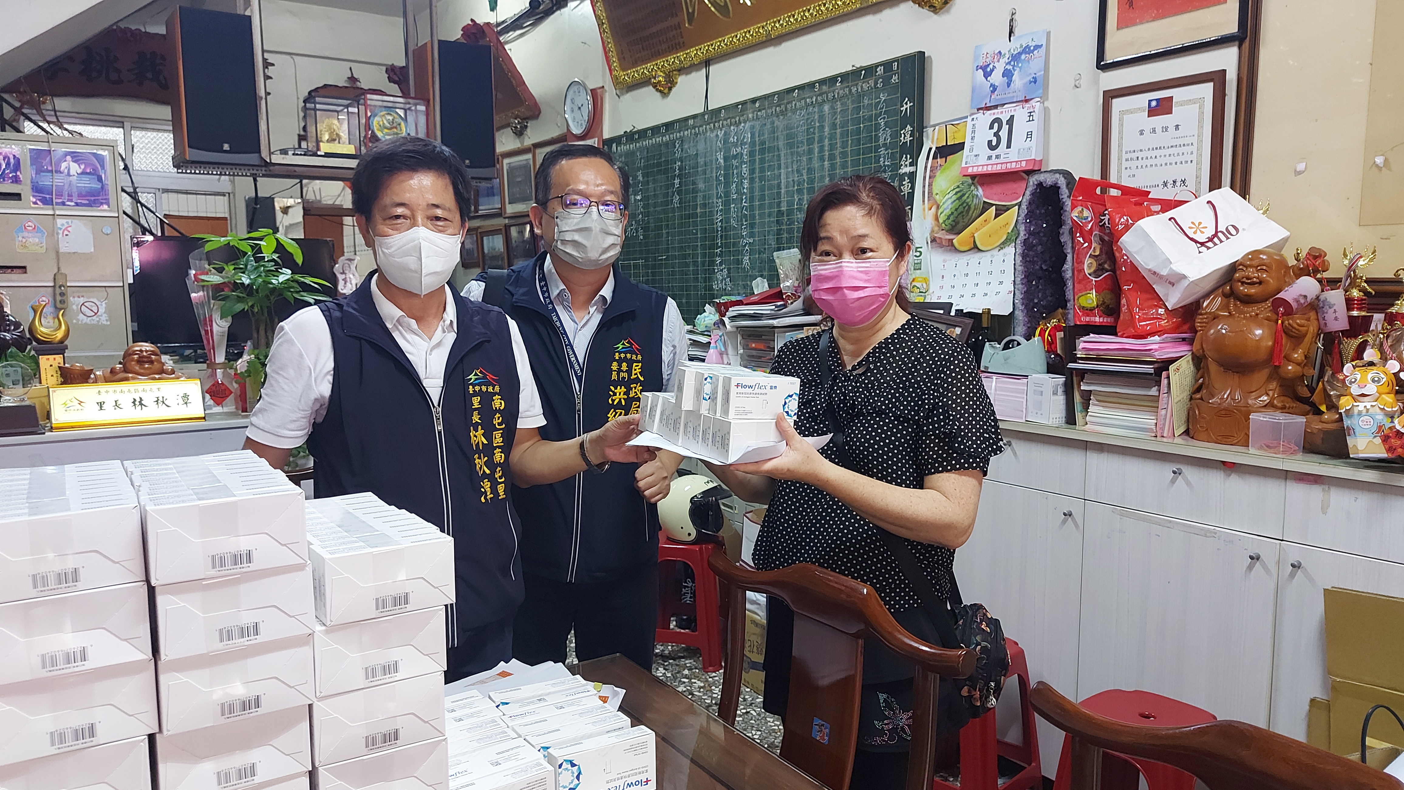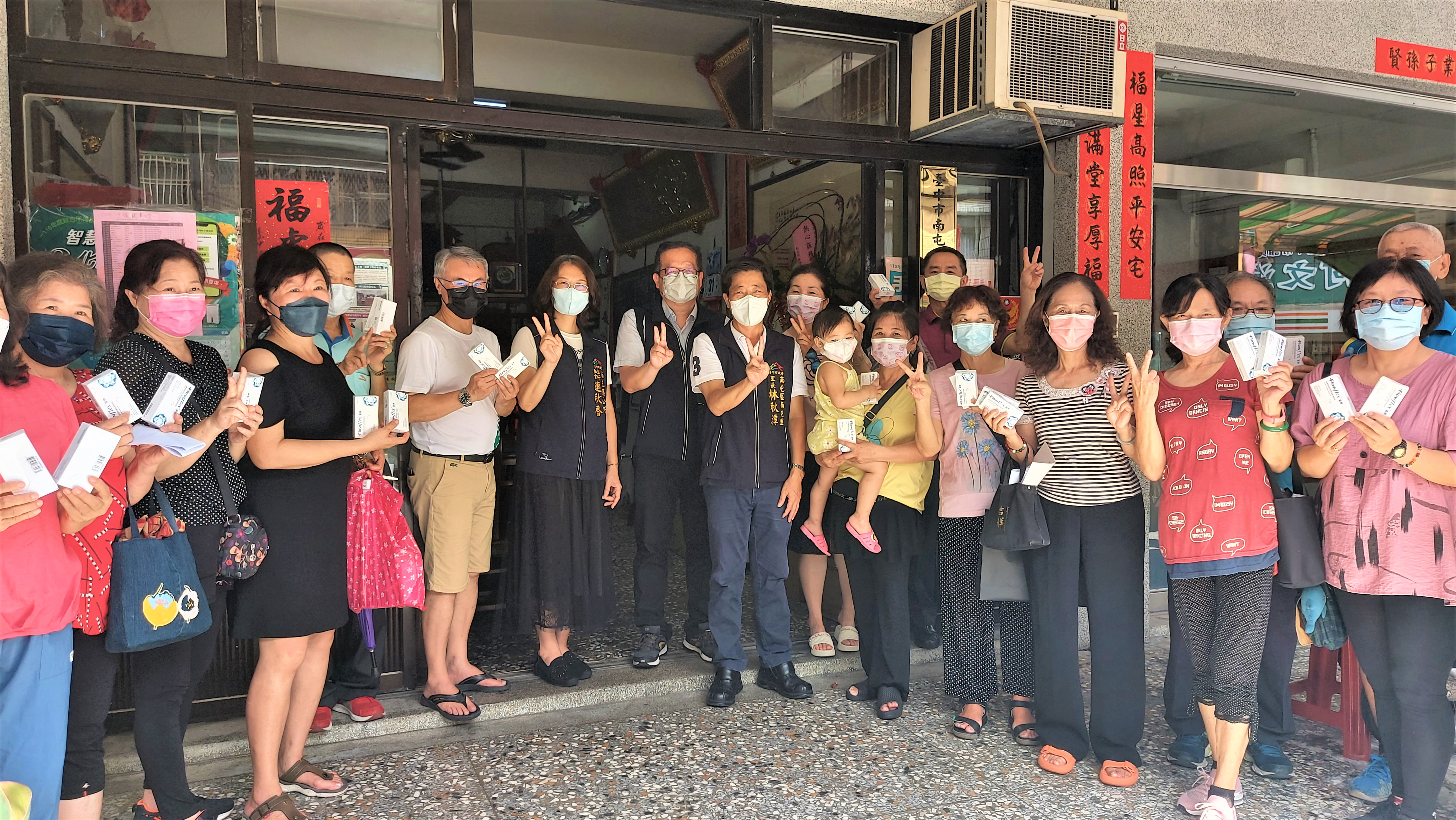 南屯區南屯里長林秋潭表示,幼童疫苗覆蓋率仍低,且5歲以下幼童甚至無法施打疫苗,身體抵抗力較差,感謝市長盧秀燕優先照顧孩童普發試劑,讓家長能即時在孩童有症狀時使用快篩,確保孩童健康。他在今日下午也即刻啟動里內快篩試劑普發,並號召里內各鄰長至里辦公處進行名冊及快篩試劑分送,及配送作業行前叮嚀,也感謝各鄰長的大力協助,讓里內居民多一份安心。