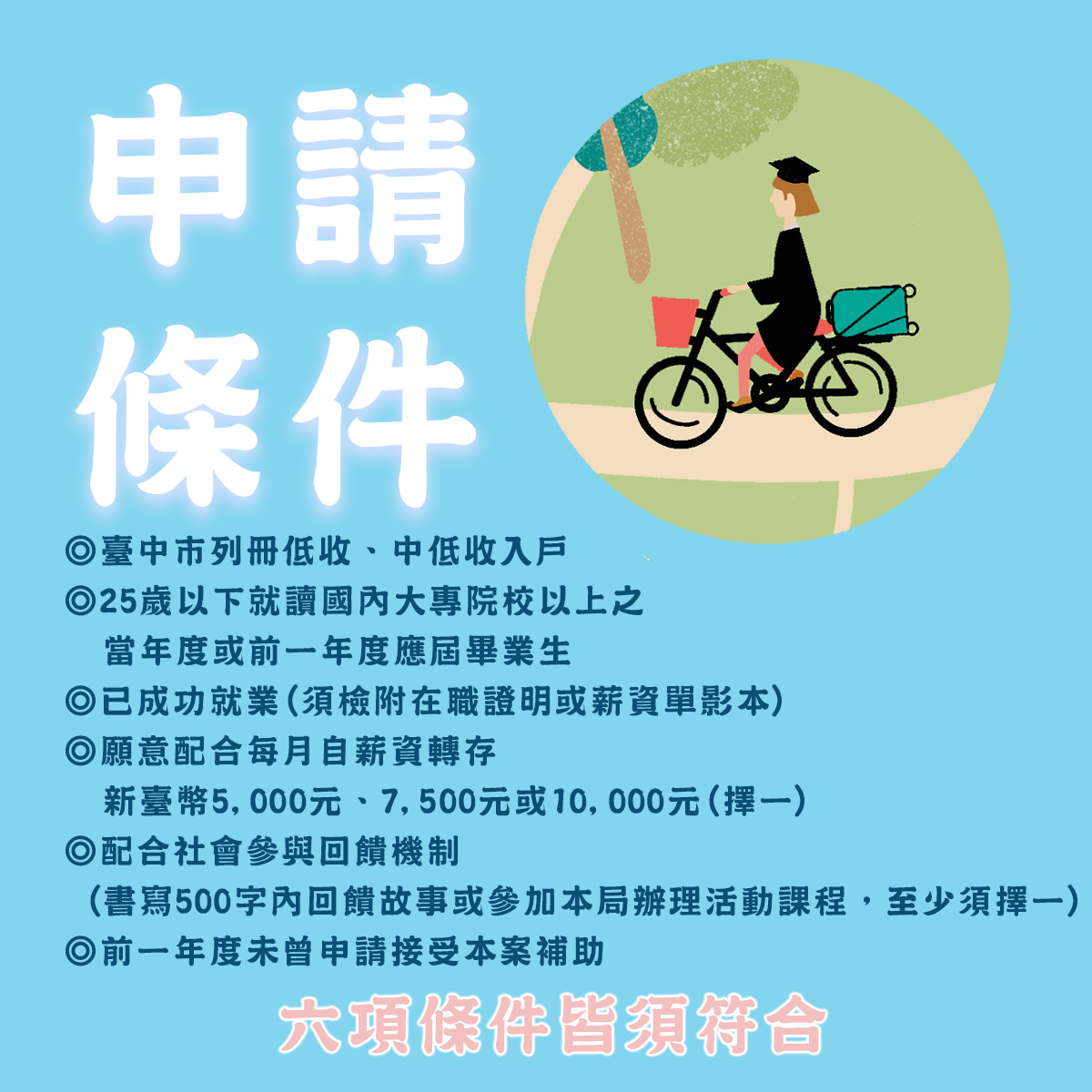 社會局補充,感謝藍氏父子捐贈100萬元相對提撥金,公私協力鼓勵弱勢家戶青年學子穩定就業、累積資產,開創未來。第二波計畫試辦6個月,歡迎符合資格者把握機會,踴躍申請,更多詳細資訊可查詢社會局官網(https://www.society.taichung.gov.tw/1860004/post) 。(6/7*12)*社會局