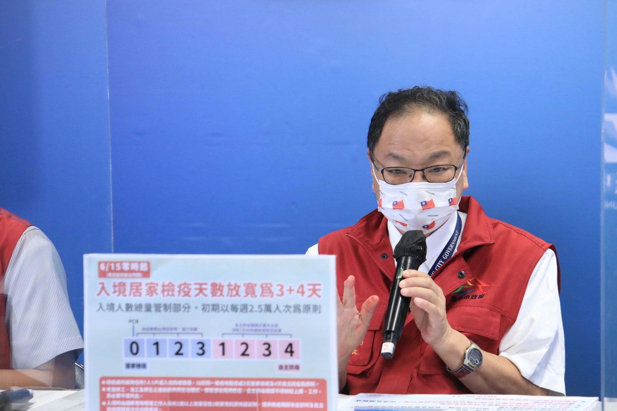 有關入境居家檢疫新規範,民政局長吳世瑋說明,今起入境居家檢疫天數鬆綁為3+4,前3天居家檢疫、後4天自主防疫,檢疫處所維持住所11戶或於防疫替代所,以同一檢疫地點完成3天居家檢疫及4天自主防疫為原則,公所會設置電子圍籬並每日電話關心、致贈關懷包;而自主防疫期間若想改至住所,可向區公所申請,區長將檢視相關情形決定是否更換,限更換一次。