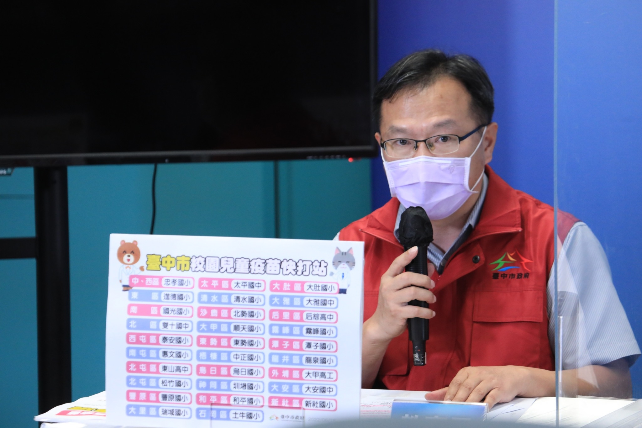 中央宣佈兒童疫苗接種時程縮短為四週,台中市政府隨即啟動「兒童疫苗2.0計畫」,率先於6月18、19日擇定台中市各行政區共29校開設「校園兒童疫苗快打站」。副市長令狐榮達今(15)日於疫情線上記者會表示,各國小、幼兒園從昨日起啟動造冊與意願調查,為符合資格的6至11歲兒童施打第二劑莫德納,預估單日約可施打2萬9000人。