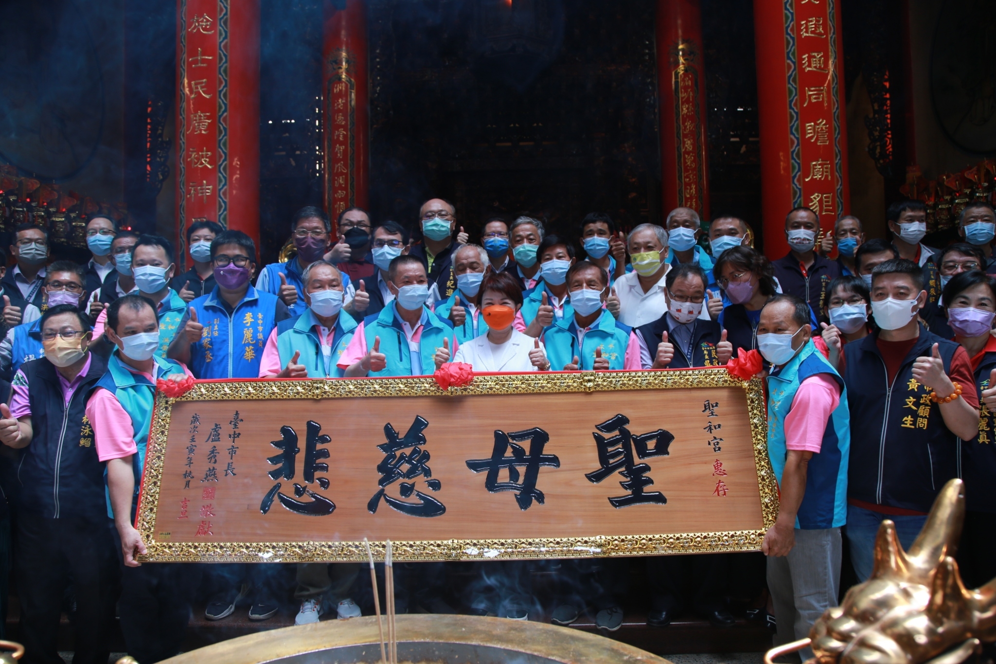 已創立逾百年的台中市「太平聖和宮」,和「太和宮」及車籠埔「廣興宮」併稱太平區三大古廟,聖和宮內主祀湄洲天上聖母,香火鼎盛,是當地重要的宗教信仰中心,廟方長期投入公益慈善,熱心參與地方事務,深獲肯定。市長盧秀燕今(16)日前往參拜祈福,並頒贈「聖母慈悲」匾額,感謝廟方長期對地方的貢獻,同時祈願地方風調雨順、居民平安健康。